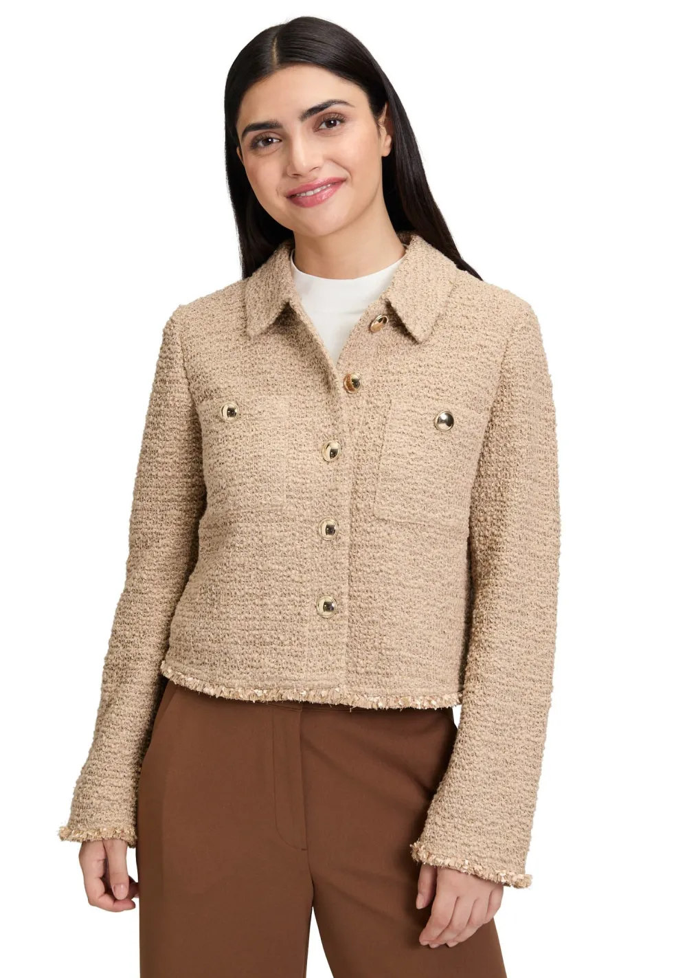 – Het model is 1.76m lang en draagt maat 38