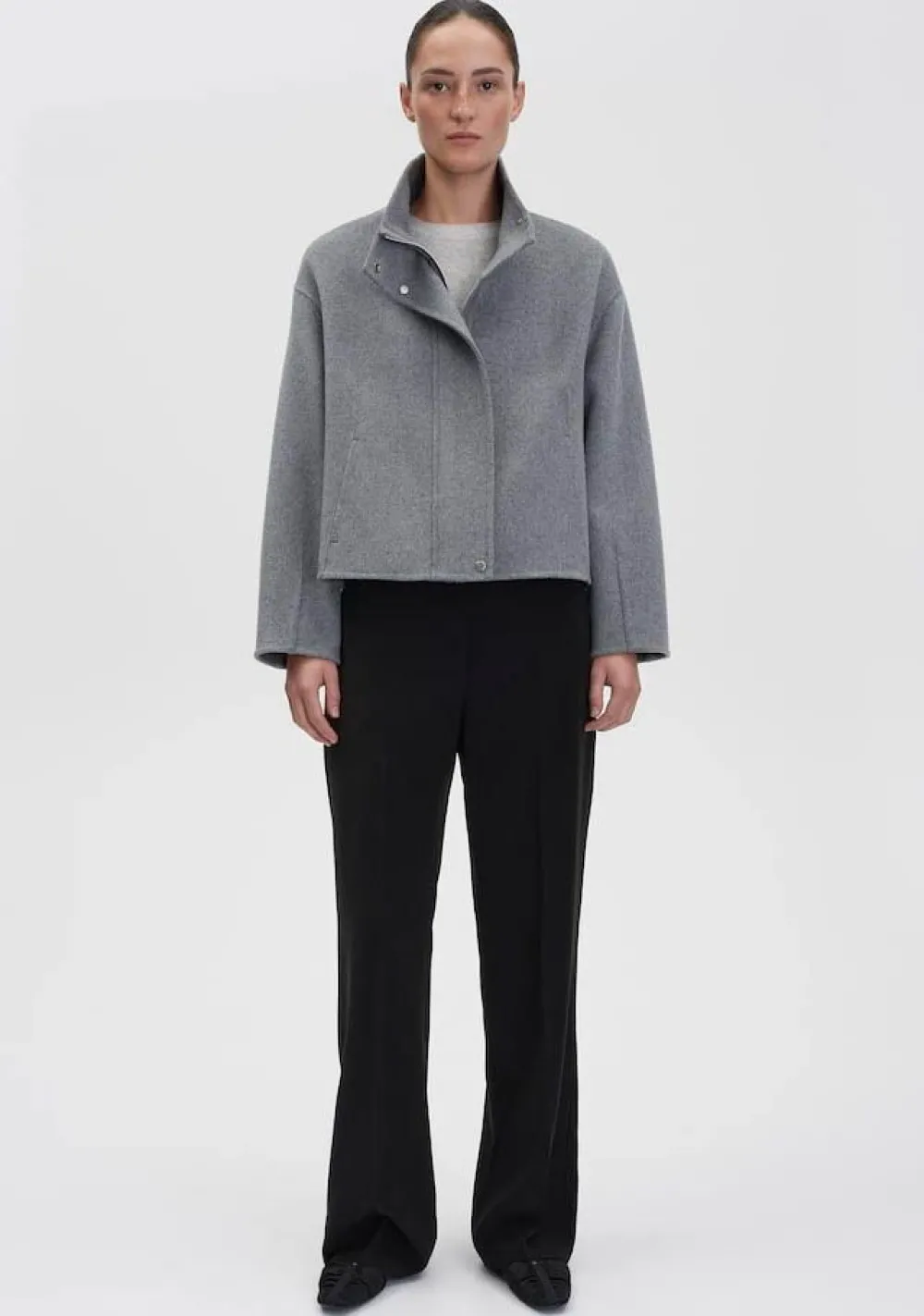 – Het model is 1.76m lang en draagt maat 36