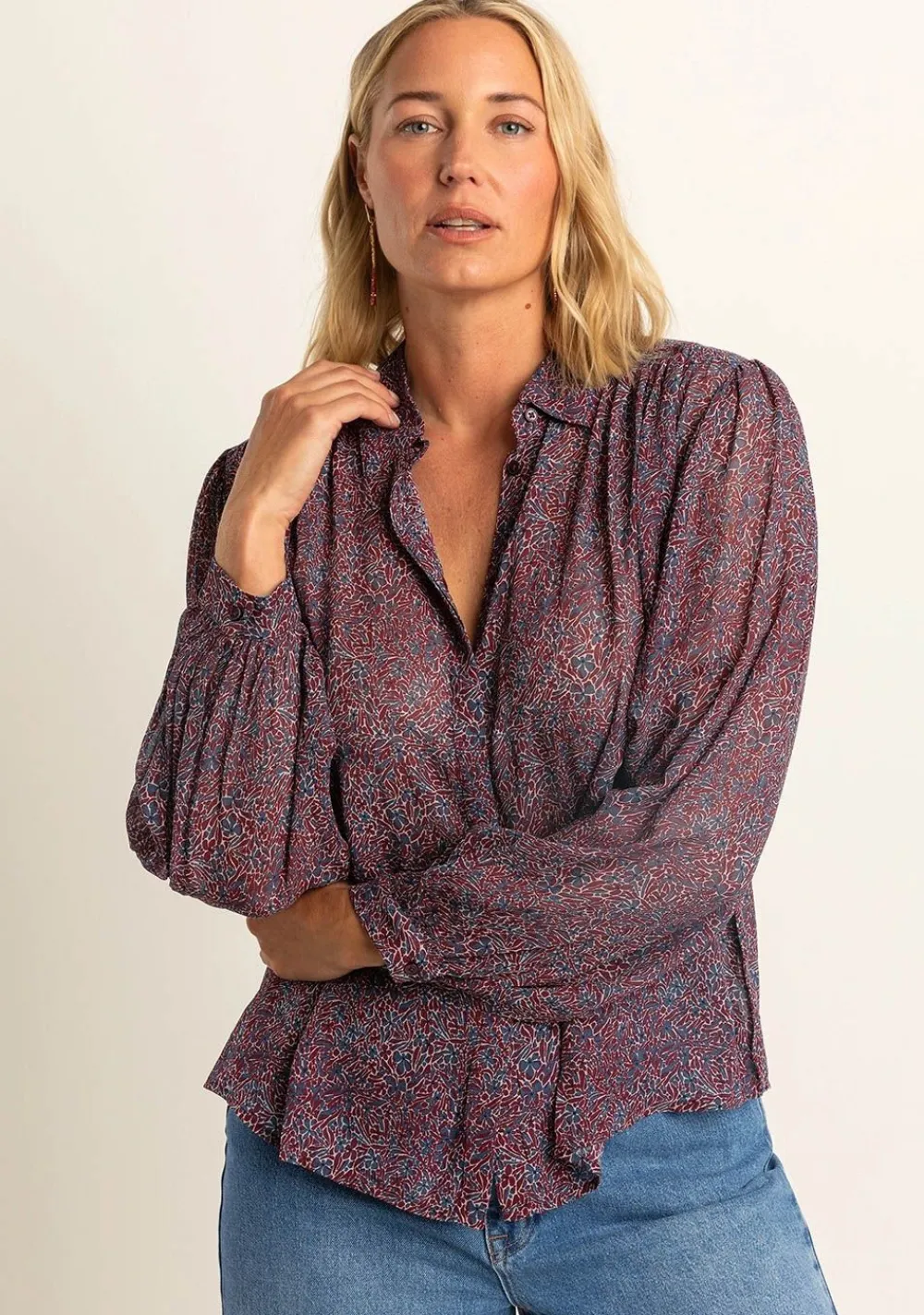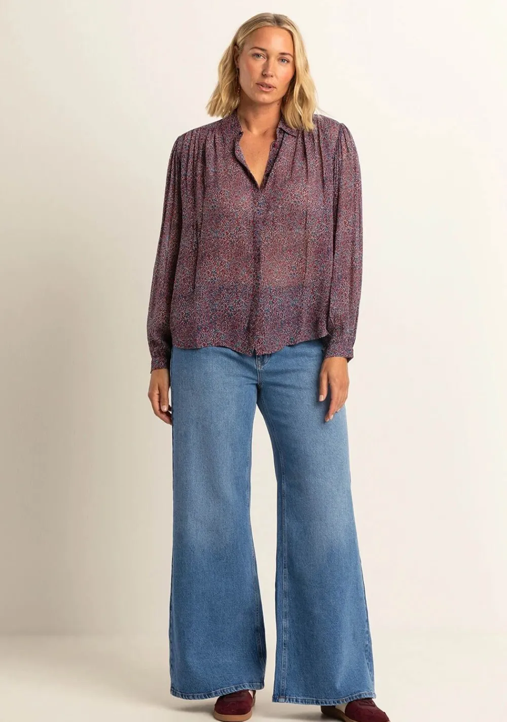 – Het model is 1.76m lang en draagt maat 36