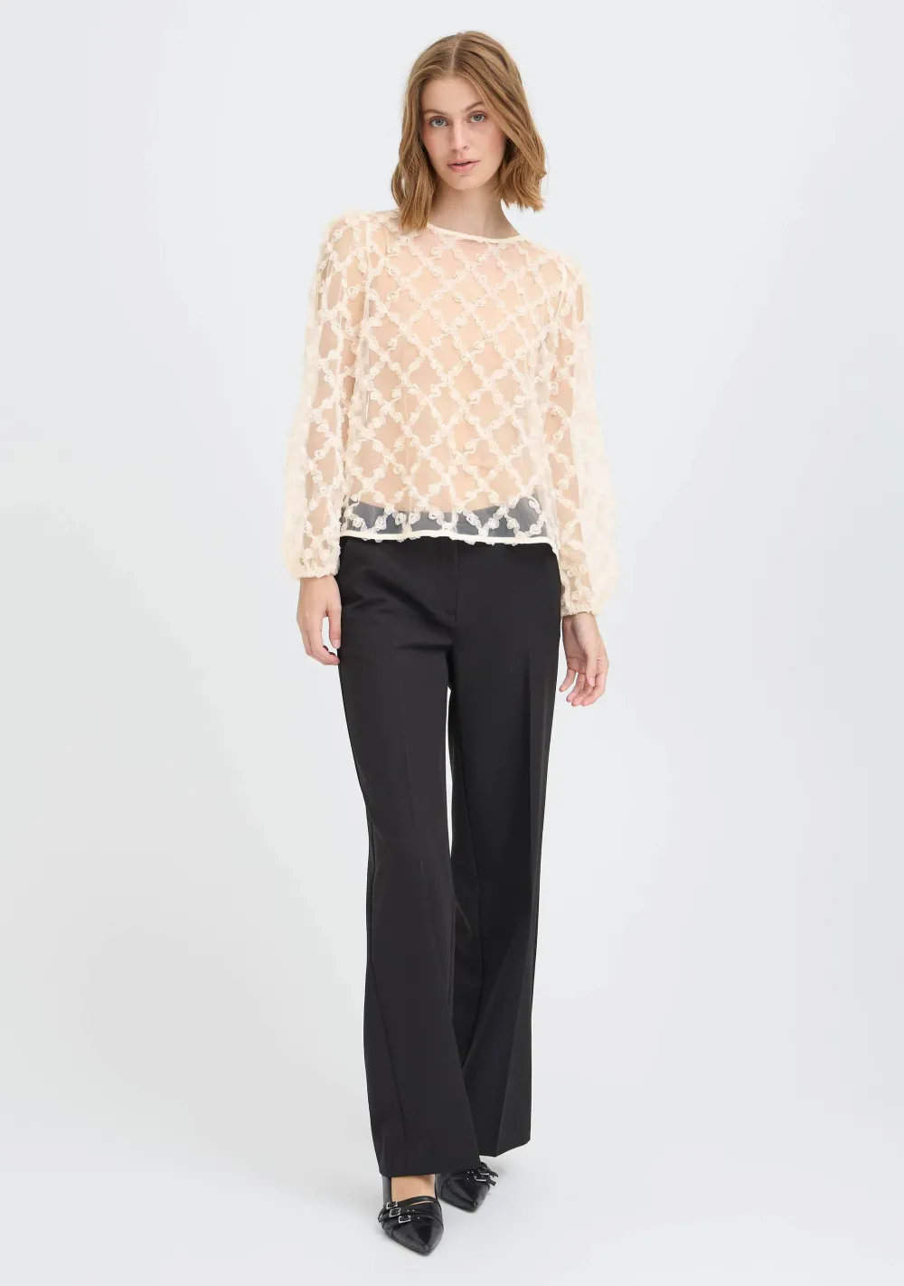 – Het model is 1.76m lang en draagt maat 36
