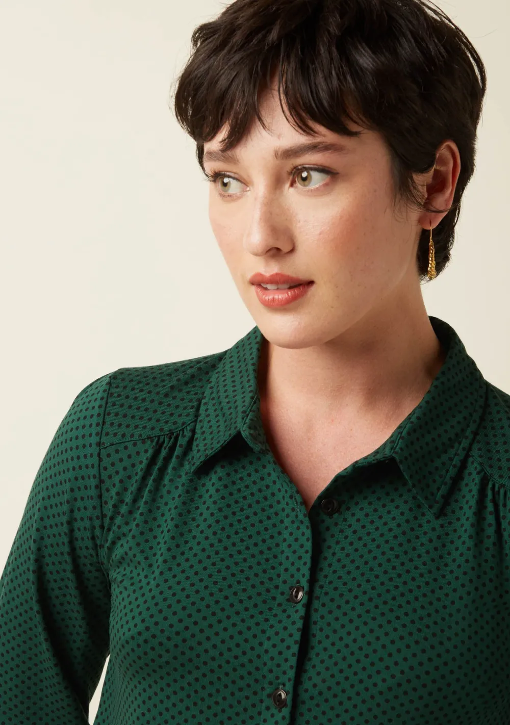 – Het model is 1.70m lang en draagt maat S