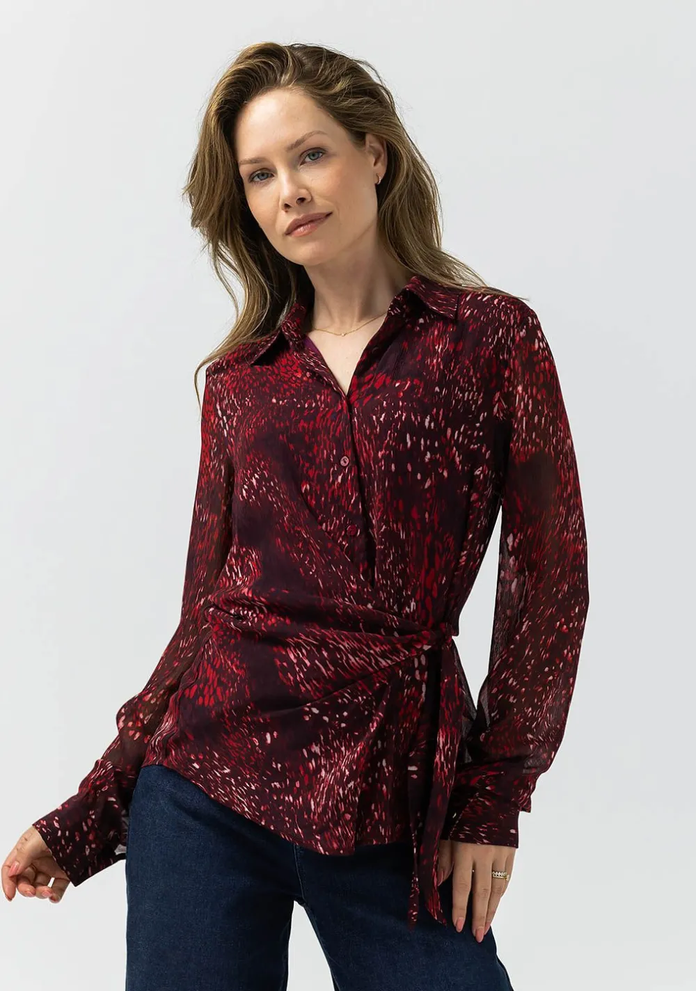 – Het model is 1.76m lang en draagt maat 36