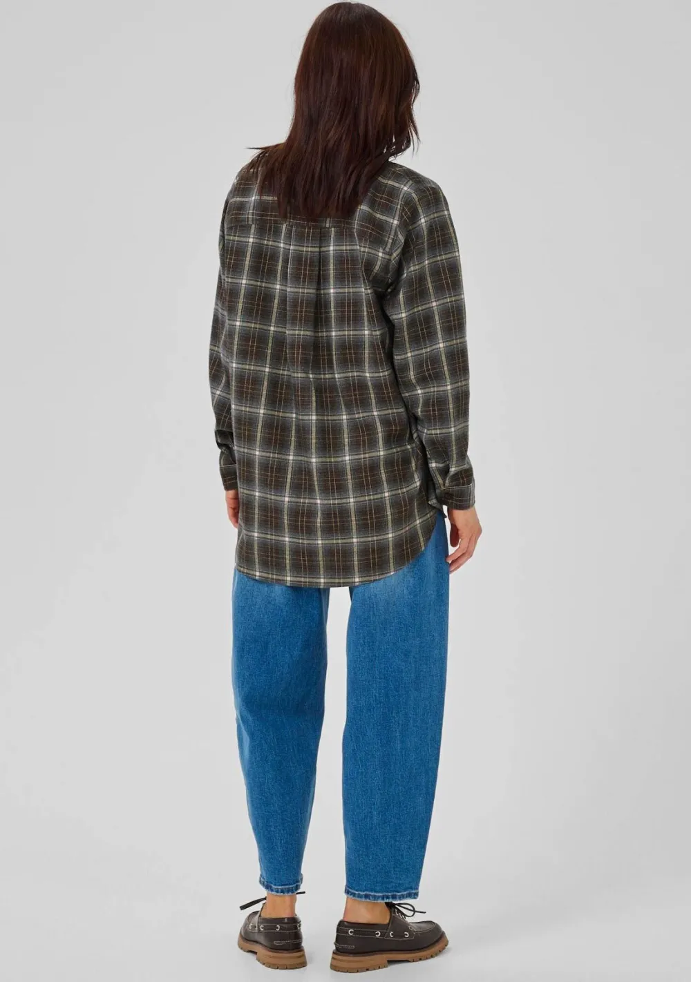 – Het model is 1.76m lang en draagt maat 36