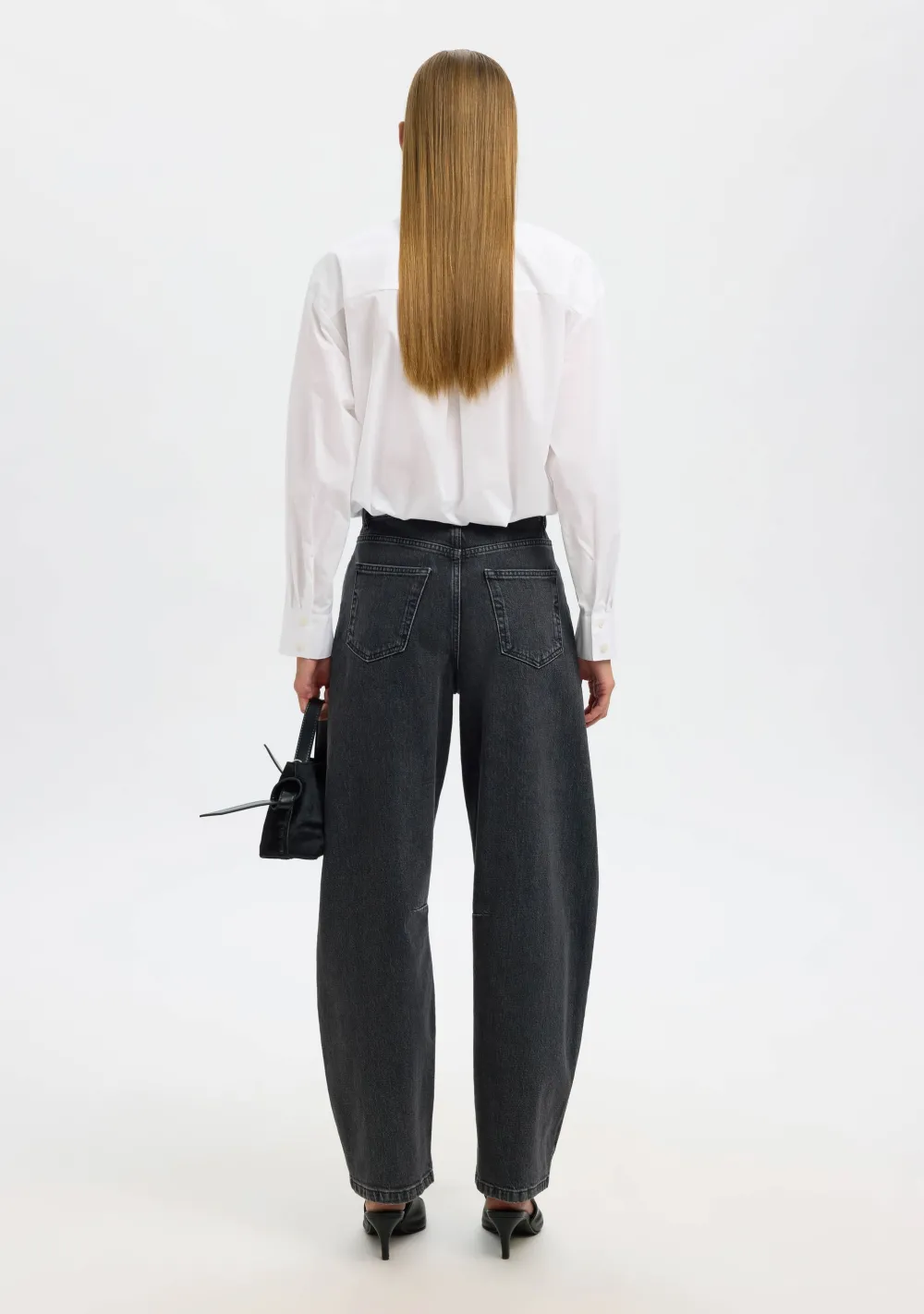 – Het model is 1.76m lang en draagt maat 36