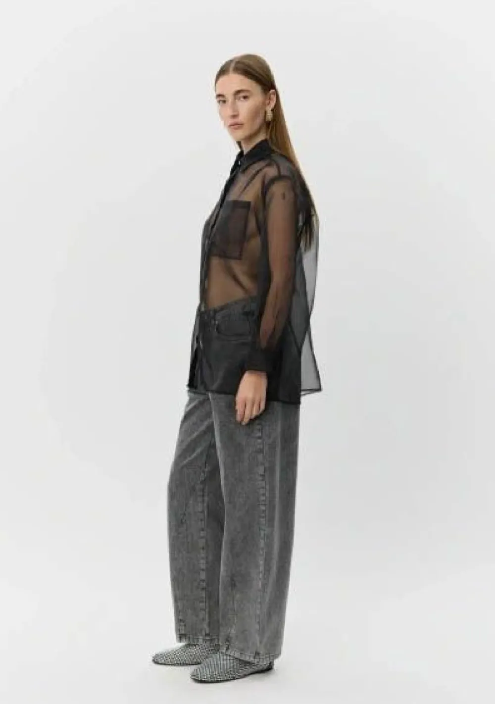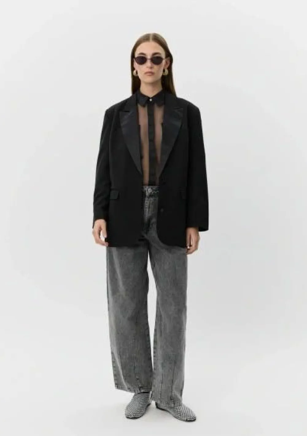 – Het model is 1.76m lang en draagt maat 36