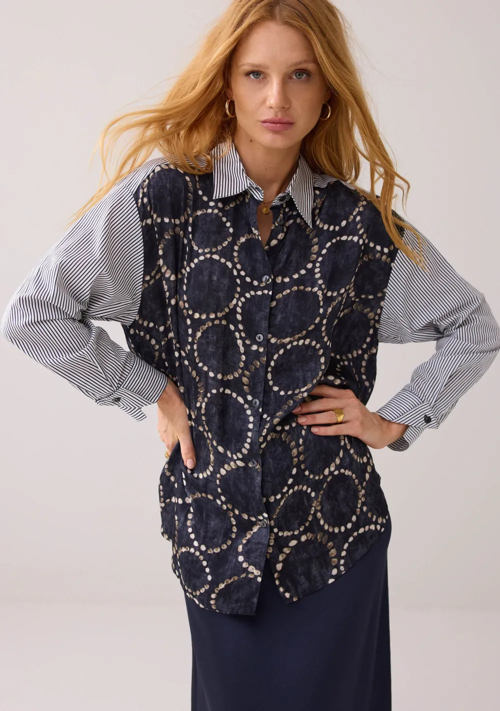 – Het model is 1.76m lang en draagt maat 36