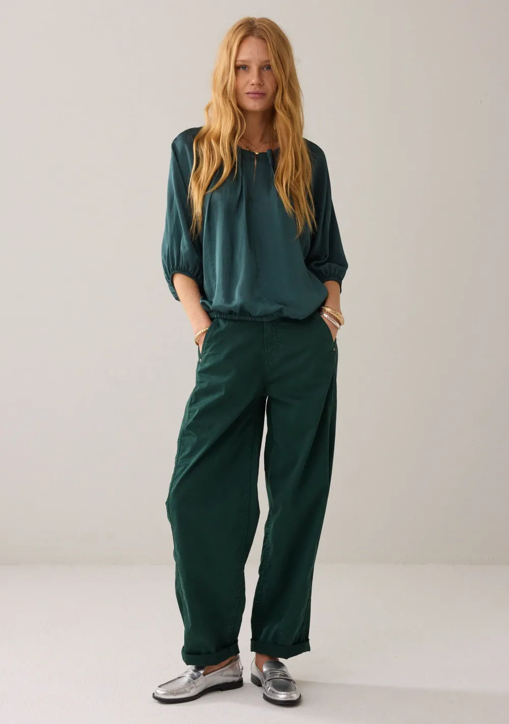 – Het model is 1.77m lang en draagt maat 36