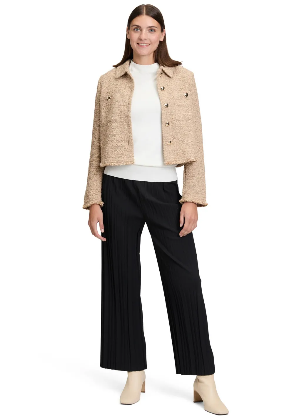 – Het model is 1.76m lang en draagt maat 38