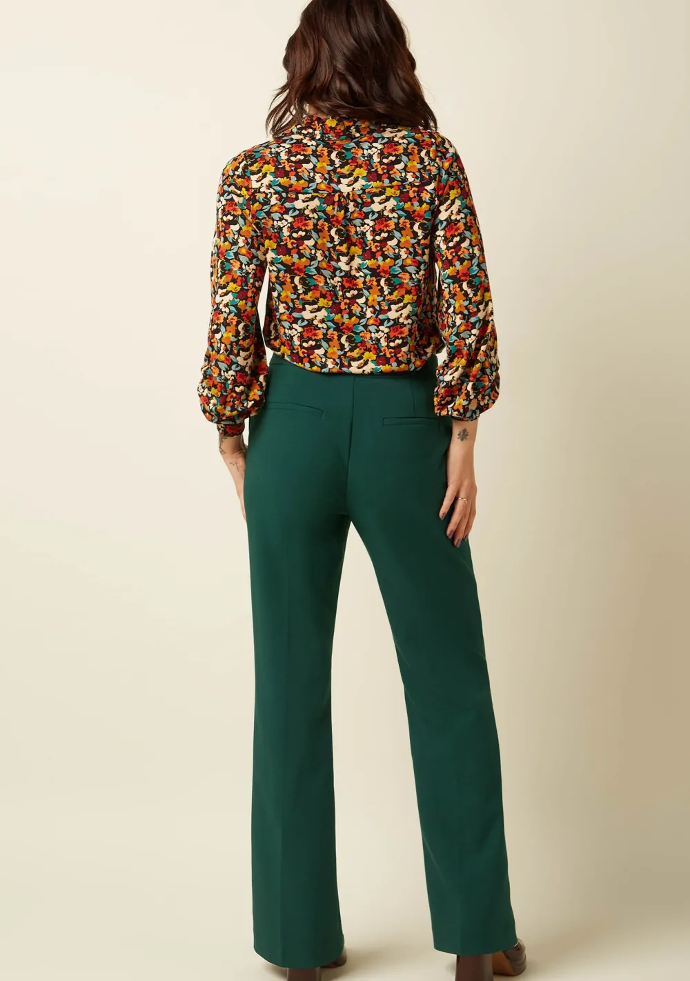 – Het model is 1.76m lang en draagt maat 36