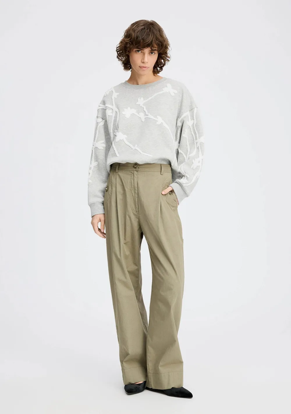 – Het model is 1.76m lang en draagt maat 36