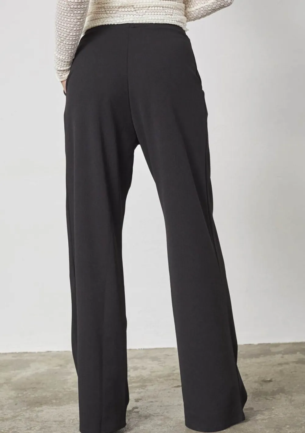 – Het model is 1.76m lang en draagt maat XS