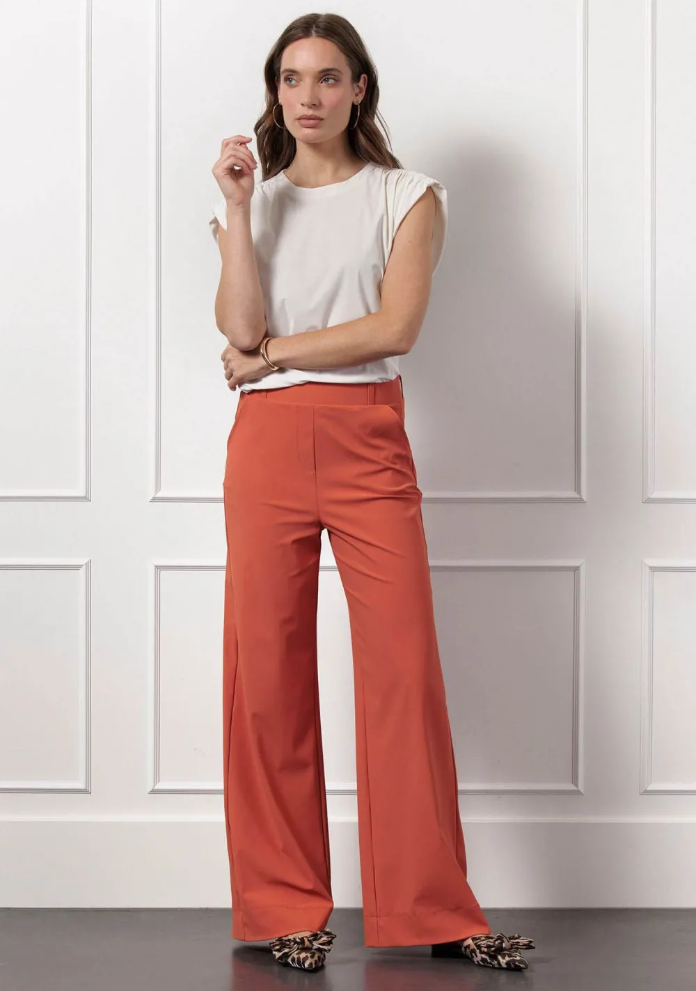 – Het model is 1.76m lang en draagt maat S