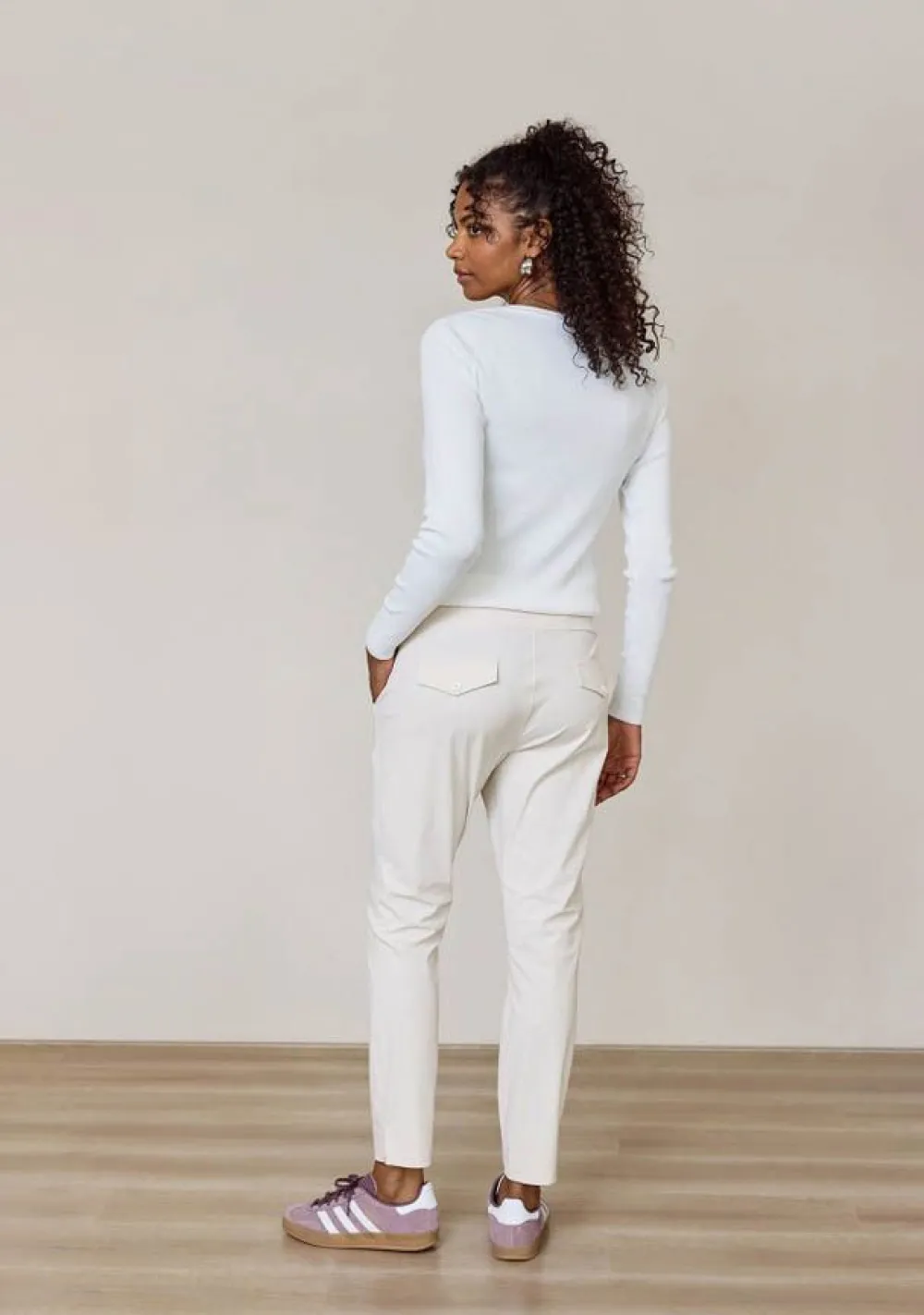 Met een binnenbeenlengte van 72 cm biedt de Startup trouser een stijlvolle en flatterende pasvorm. Het model op de foto, 1,73 meter lang, draagt maat S en laat zien hoe perfect deze broek valt.