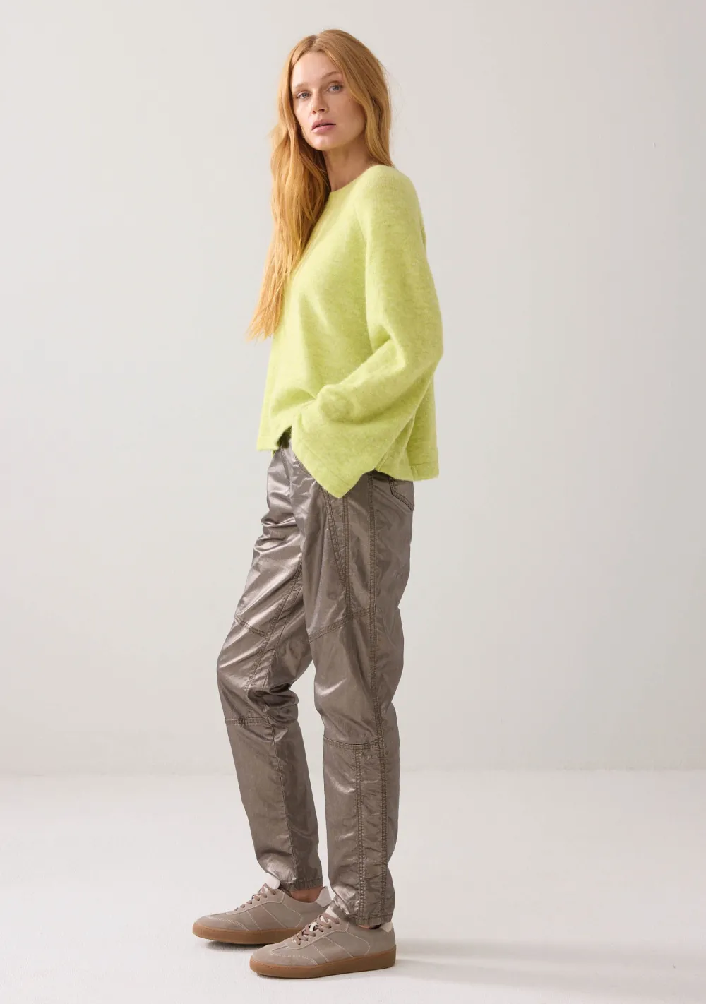 – Het model is 1.76m lang en draagt maat S