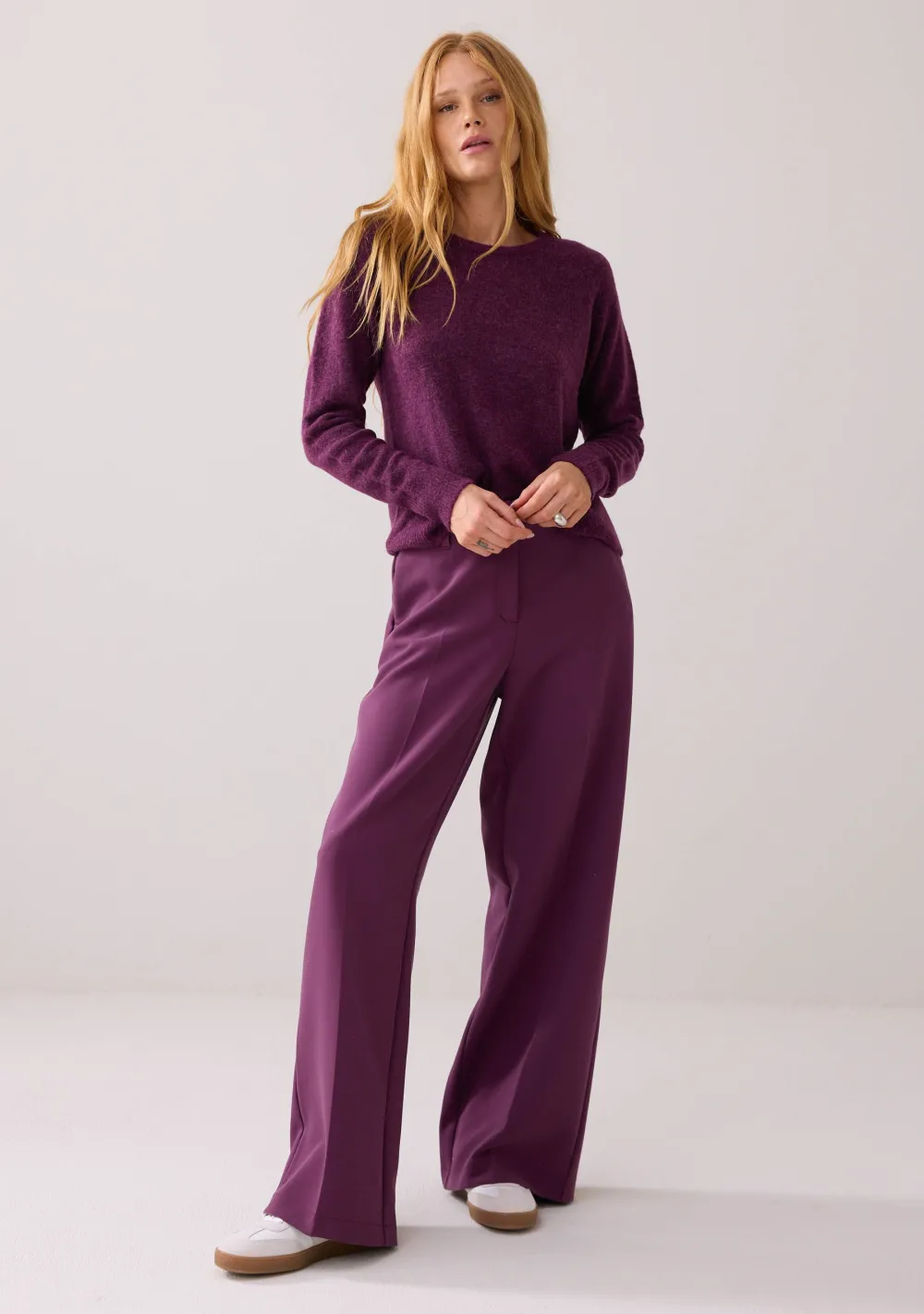 – Het model is 1.76m lang en draagt maat 36
