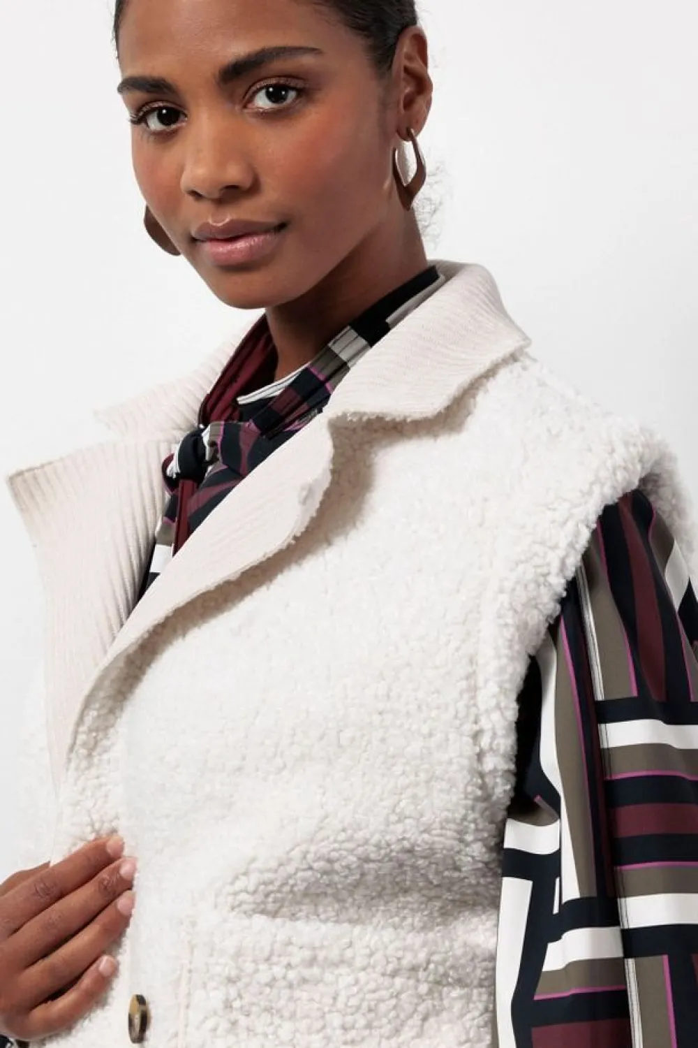 – Het model is 1.76m lang en draagt maat S