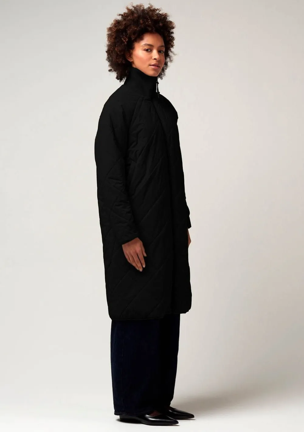 – Het model is 1.76m lang en draagt maat S