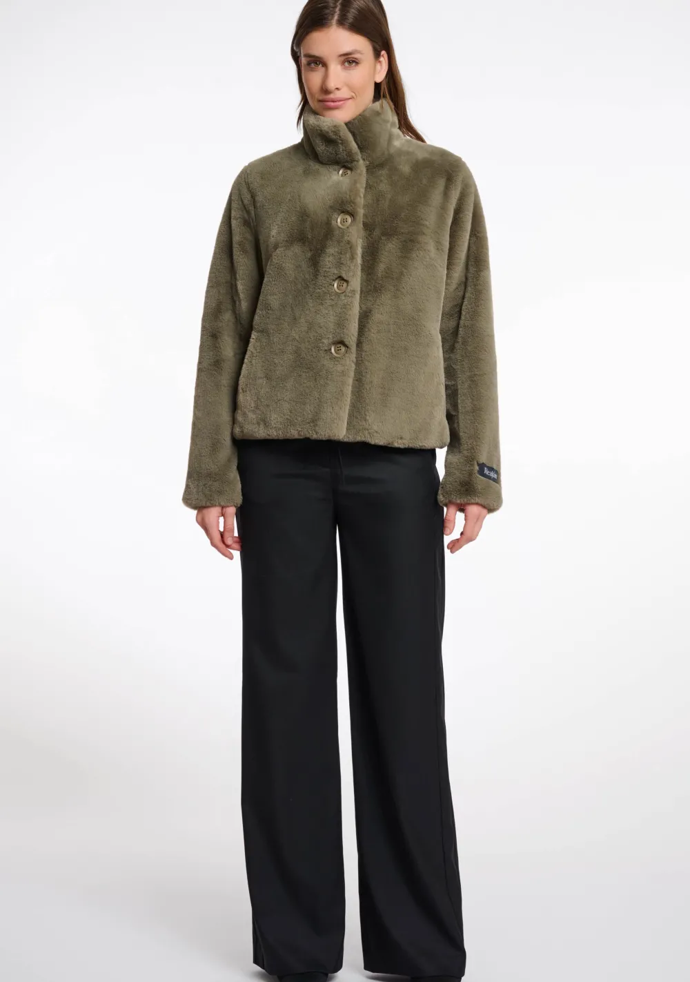 Let op: de kleur van de groene jas kan op de foto’s afwijken. De jas is in werkelijkheid kaki van kleur, maar kan op de foto’s soms een bruine tint lijken te hebben.