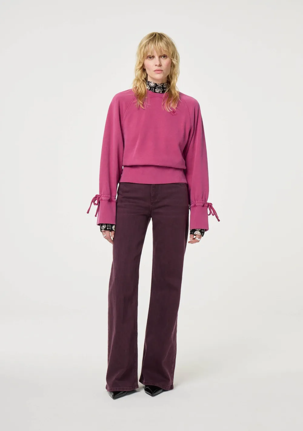 – Het model is 1.76m lang en draagt maat 27/34