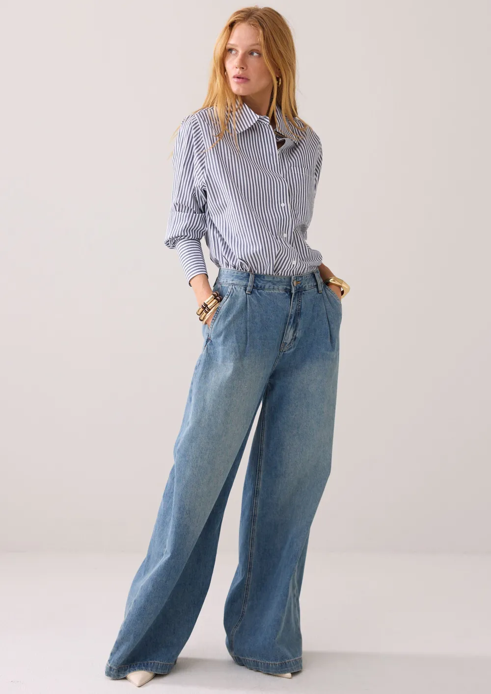 – Het model is 1.76m lang en draagt maat 36