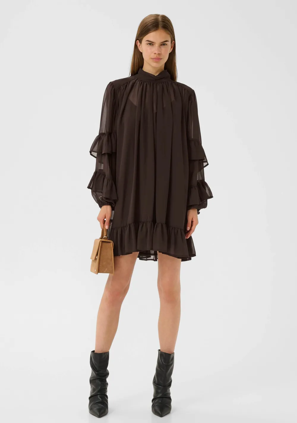 – Het model is 1.76m lang en draagt maat S