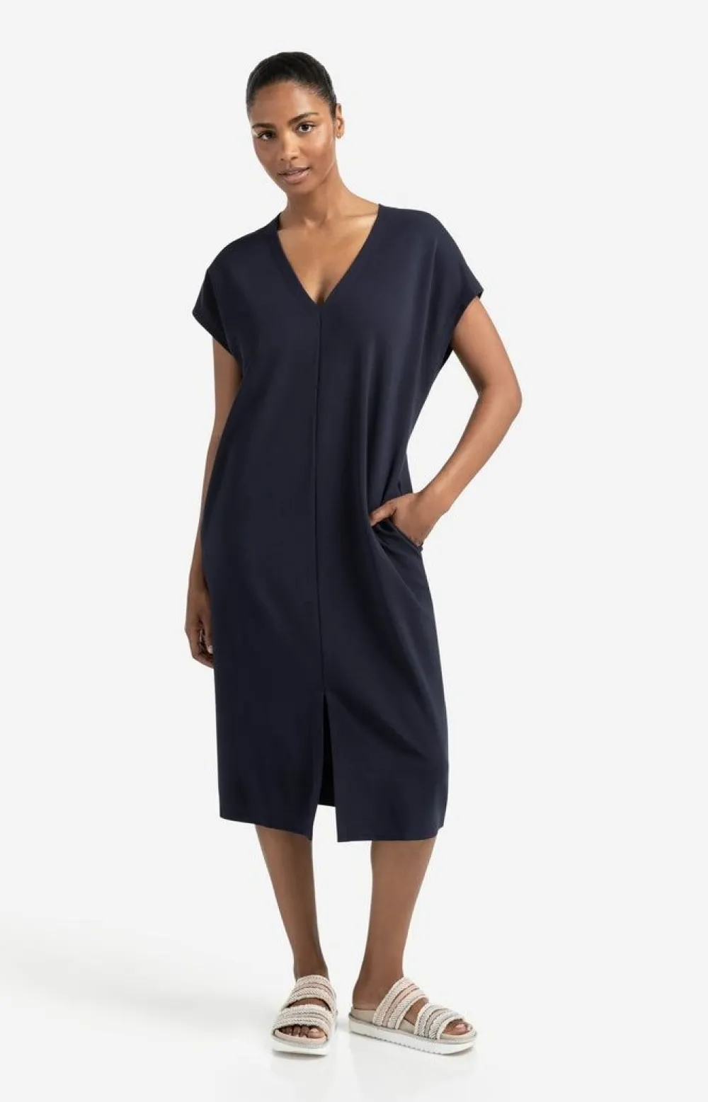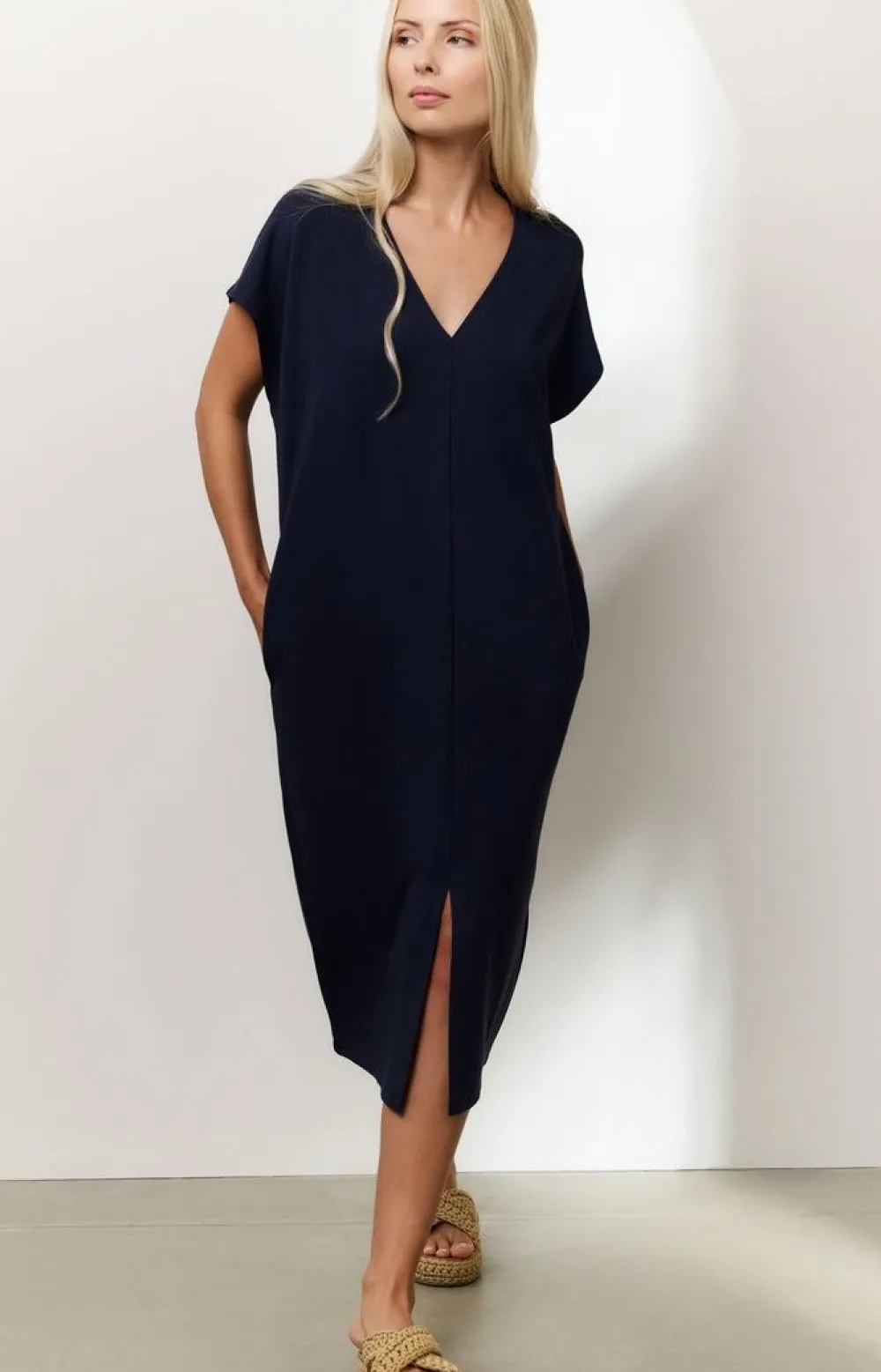 – De jurk is voorzien van steekzakken en een split detail aan de voorzijde