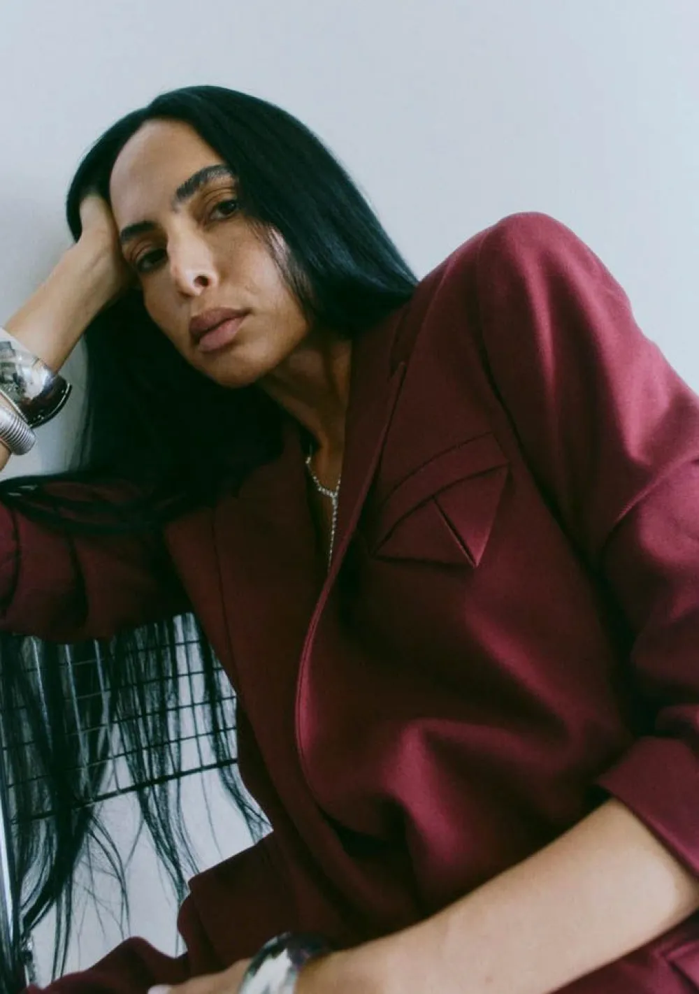 – Het model is 1.76m lang en draagt maat S