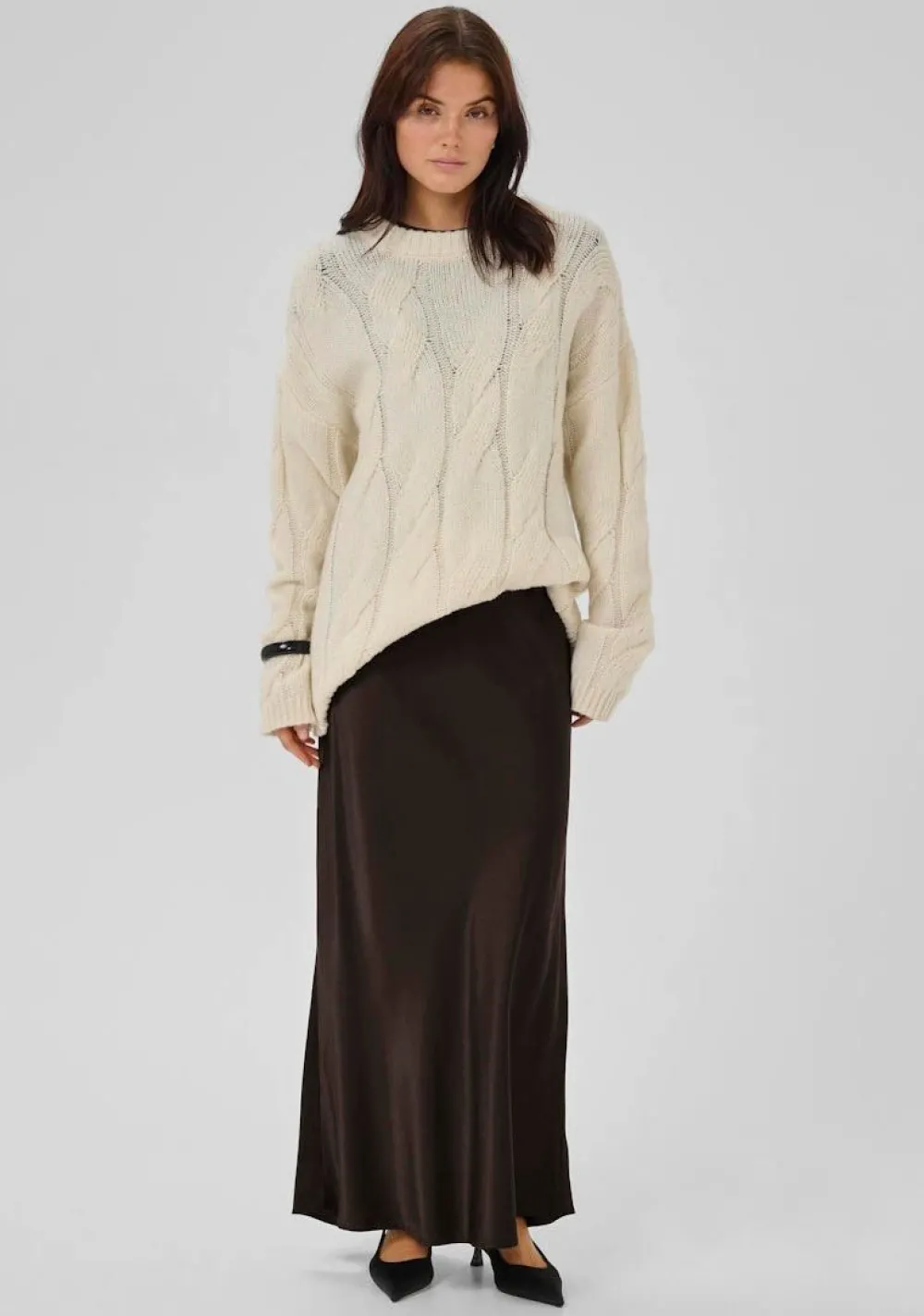 – Het model is 1.76m lang en draagt maat 36