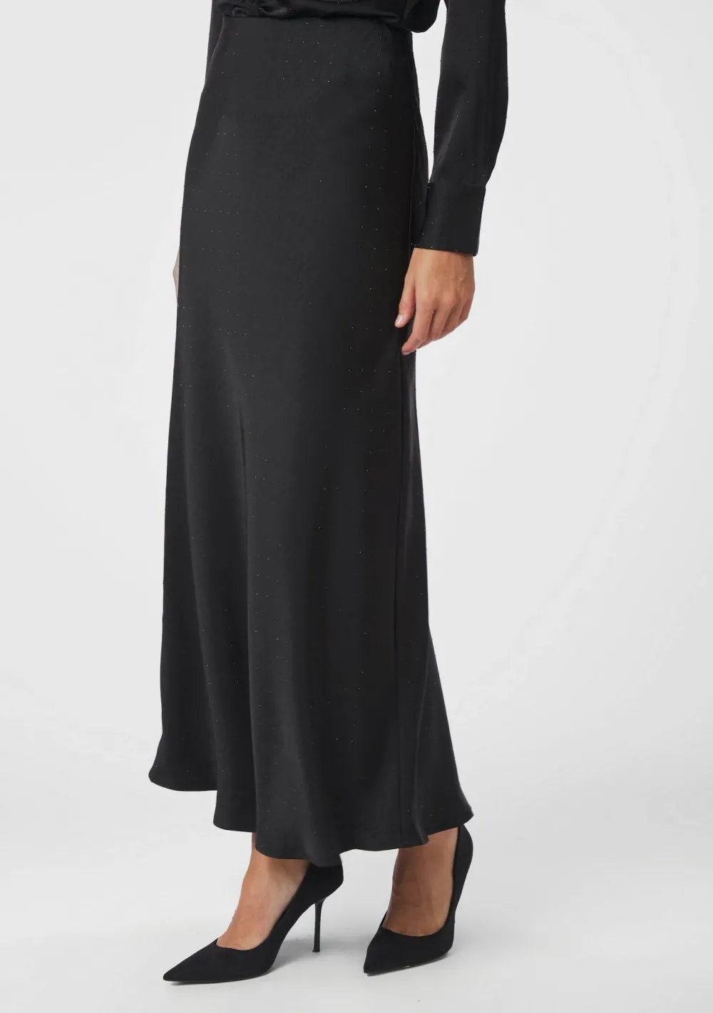 – Het model is 1.76m lang en draagt maat 36