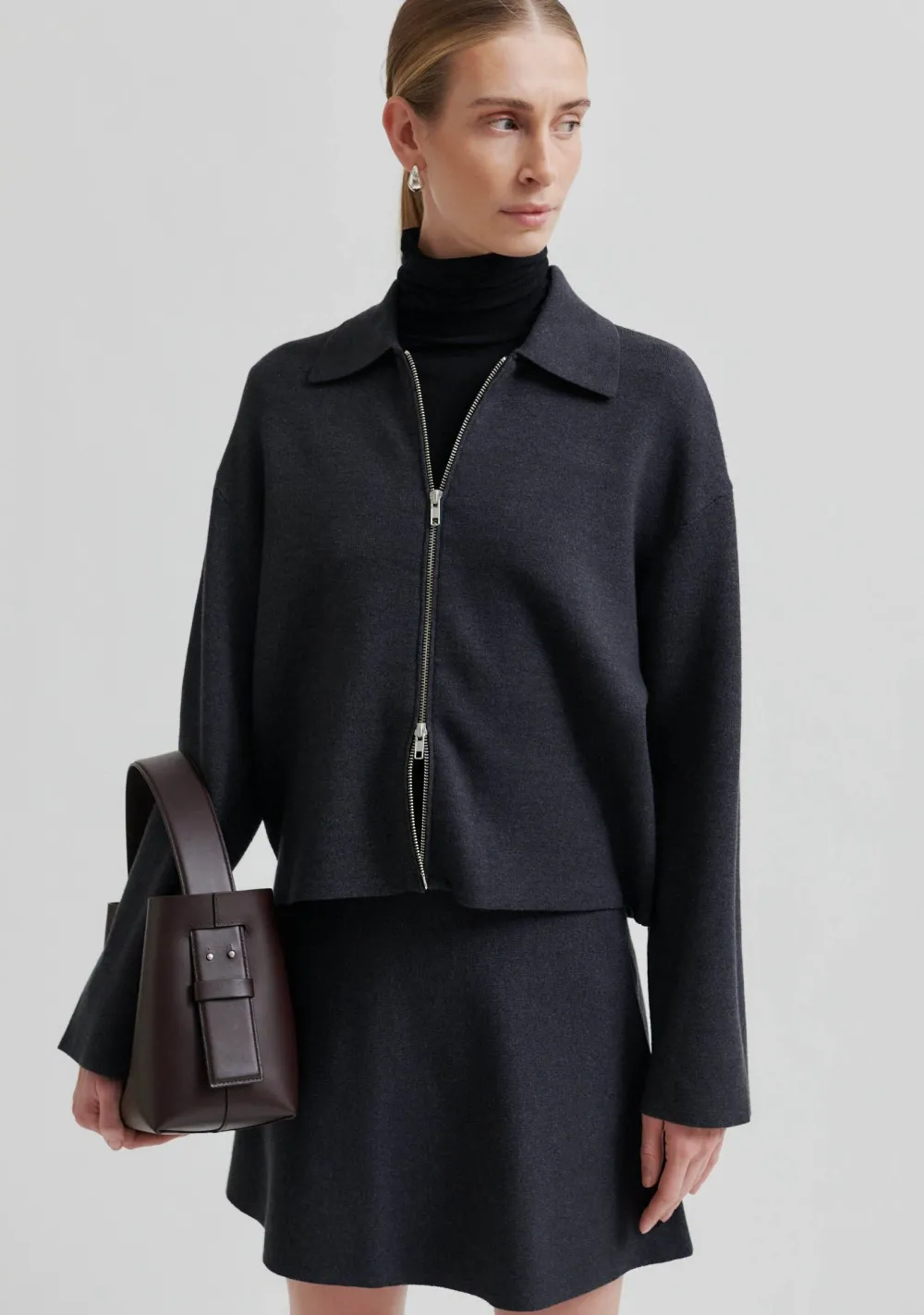 – Het model is 1.76m lang en draagt maat S