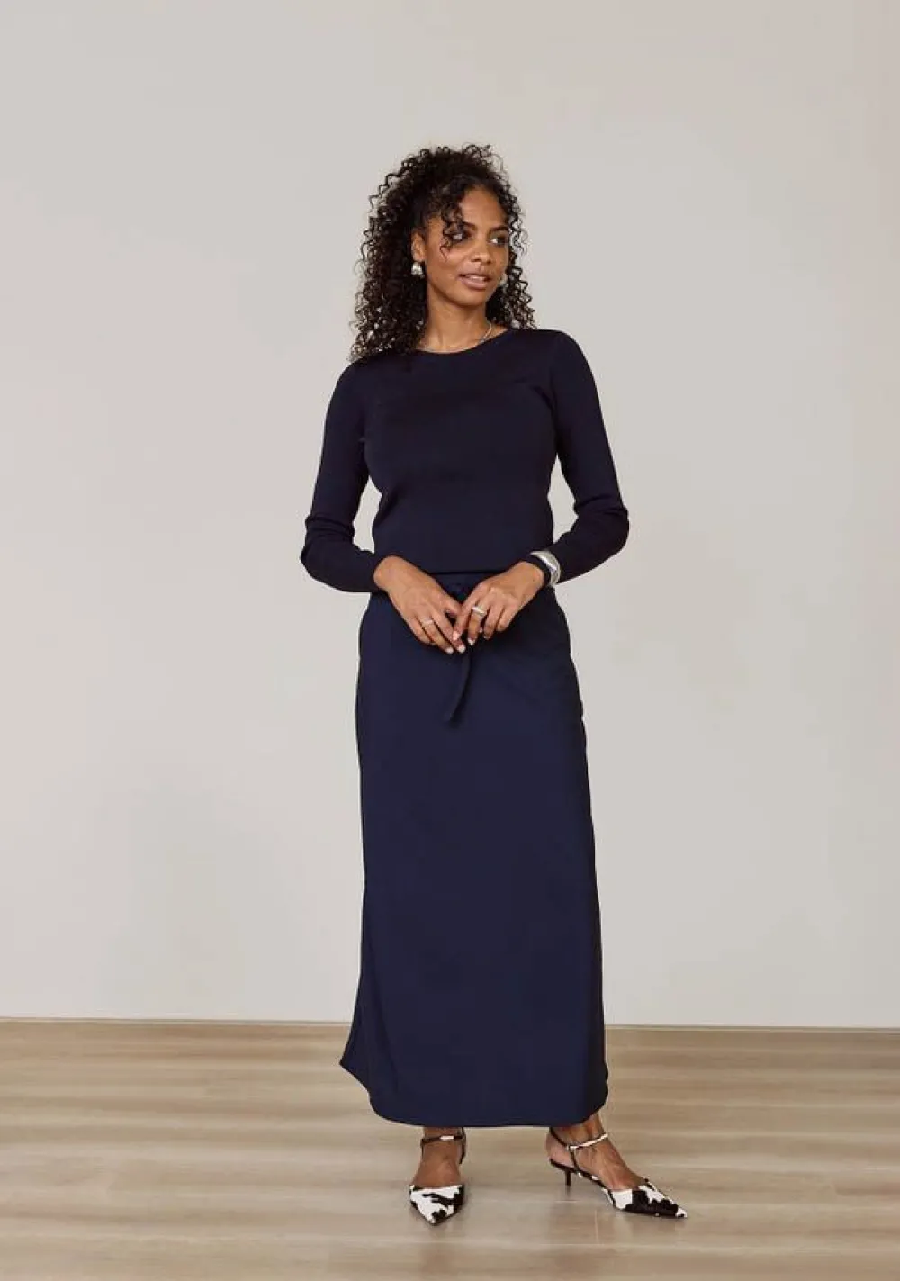 Met een lengte van 98 cm vanaf de taille valt de Chloe Skirt elegant lang, waardoor je een stijlvolle en verfijnde uitstraling krijgt.