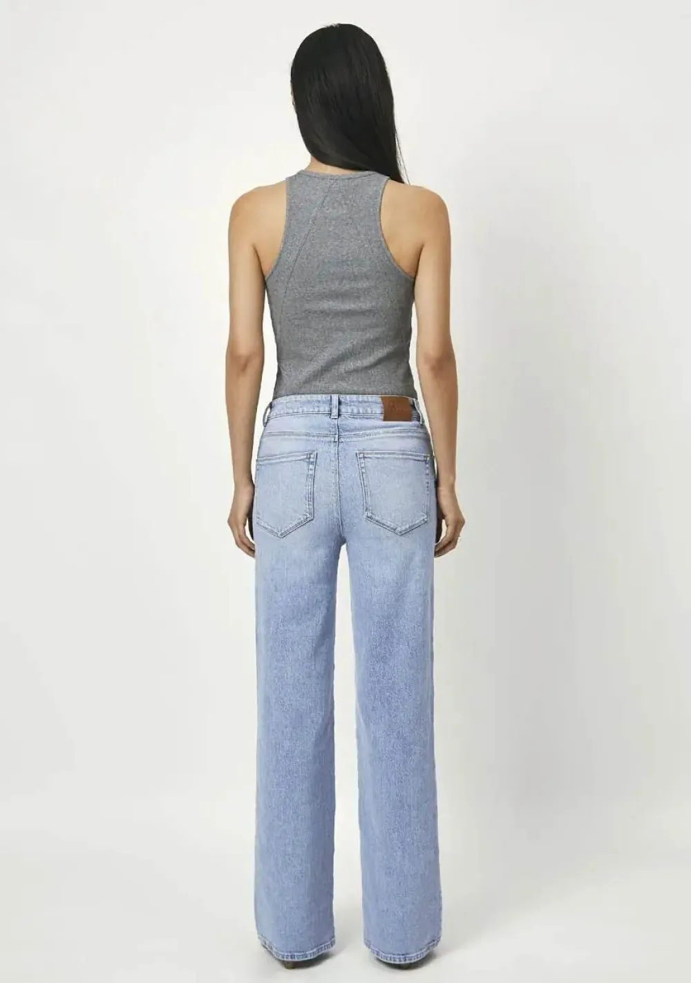 – Het model is 1.76m lang en draagt maat S