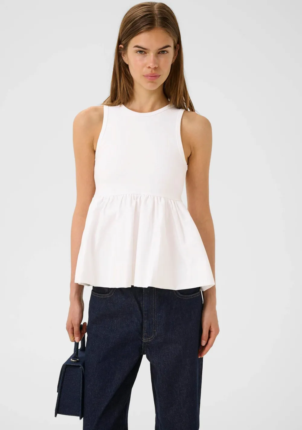 – Het model is 1.76m lang en draagt maat XS