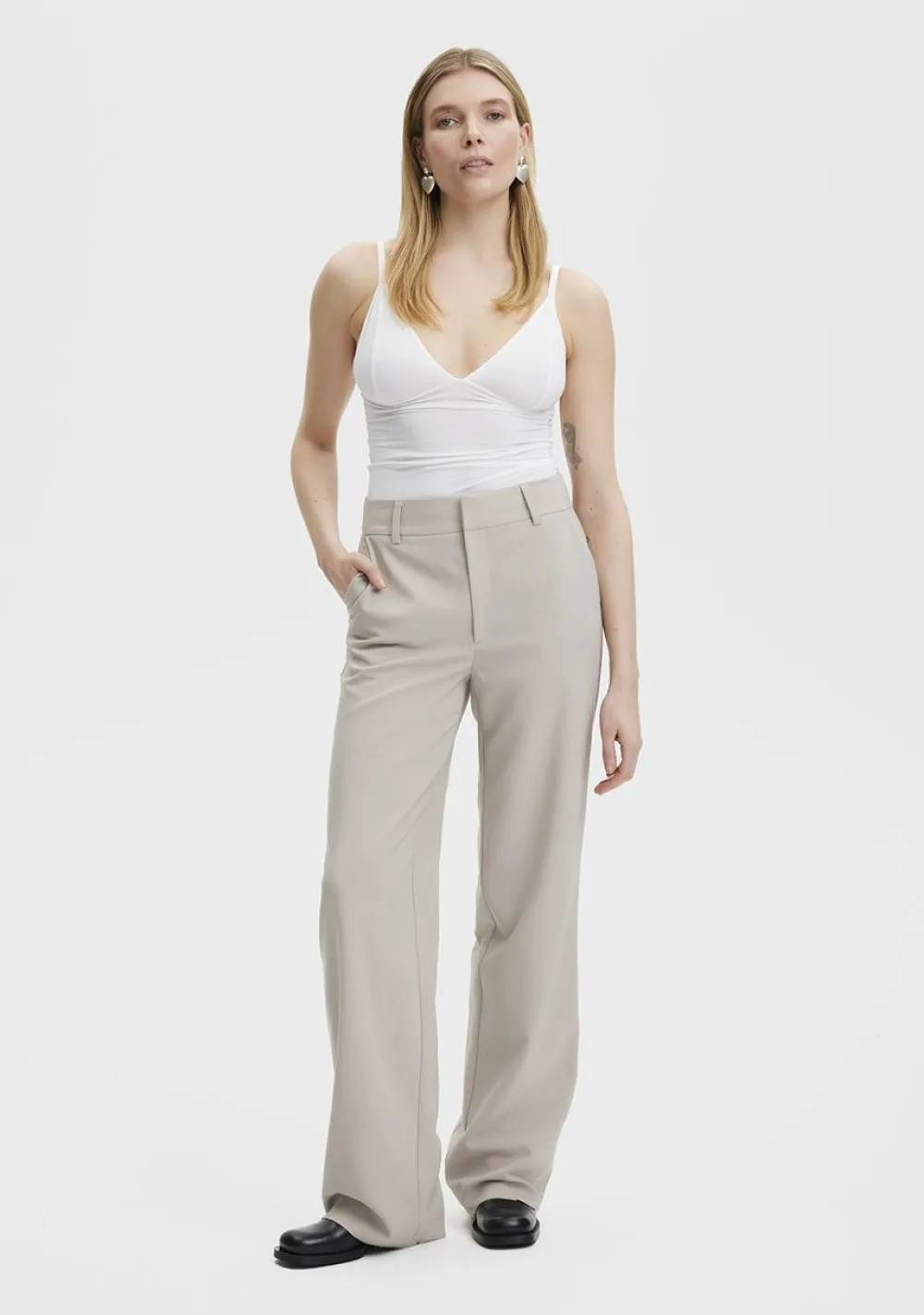 – Het model is 1.76m lang en draagt maat S
