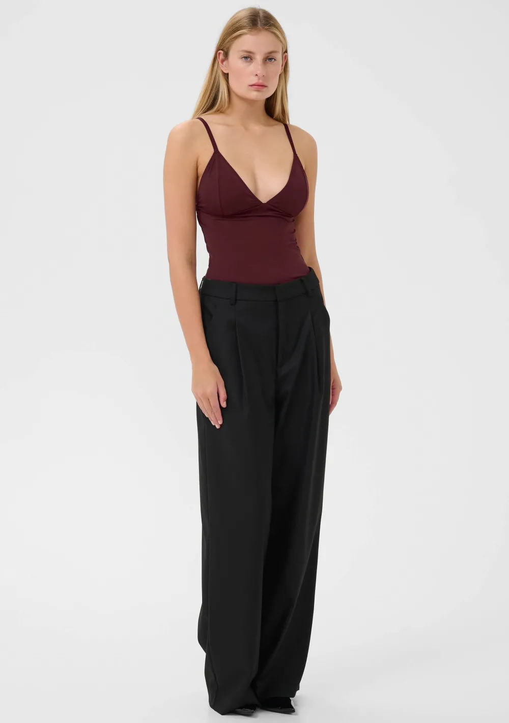 – Het model is 1.76m lang en draagt maat XS