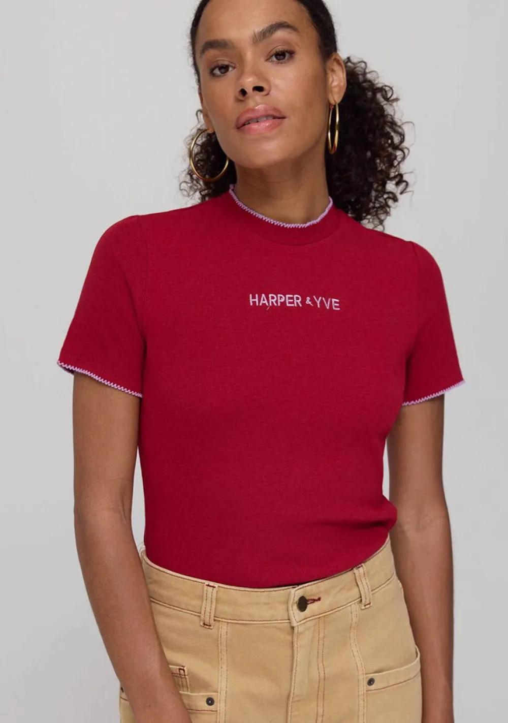 – Het model is 1.74m lang en draagt maat S
