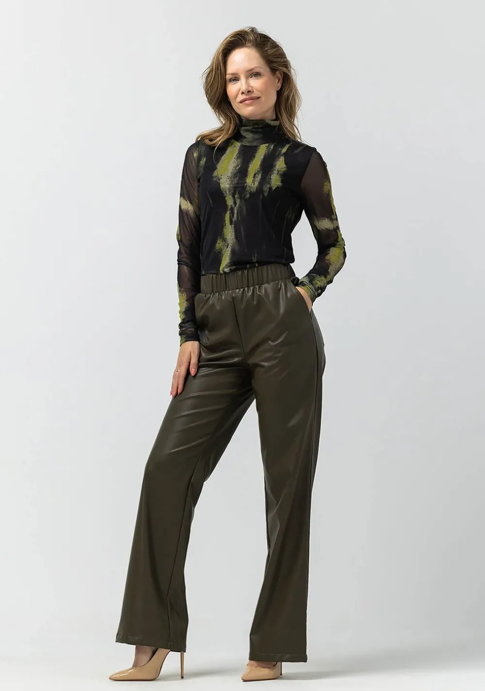 – Het model is 1.76m lang en draagt maat 36