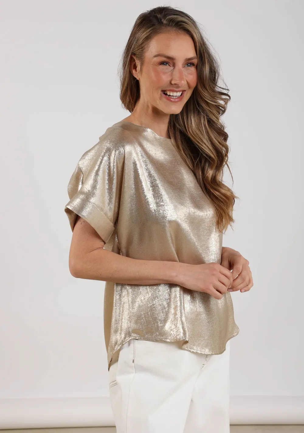 – Het model is 1.76m lang en draagt maat S