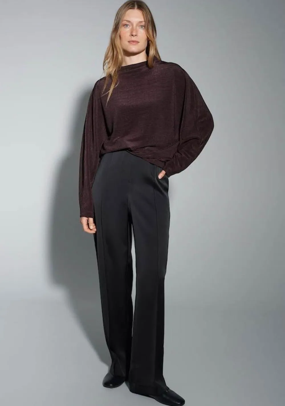 – Het model is 1.74m lang en draagt maat 36