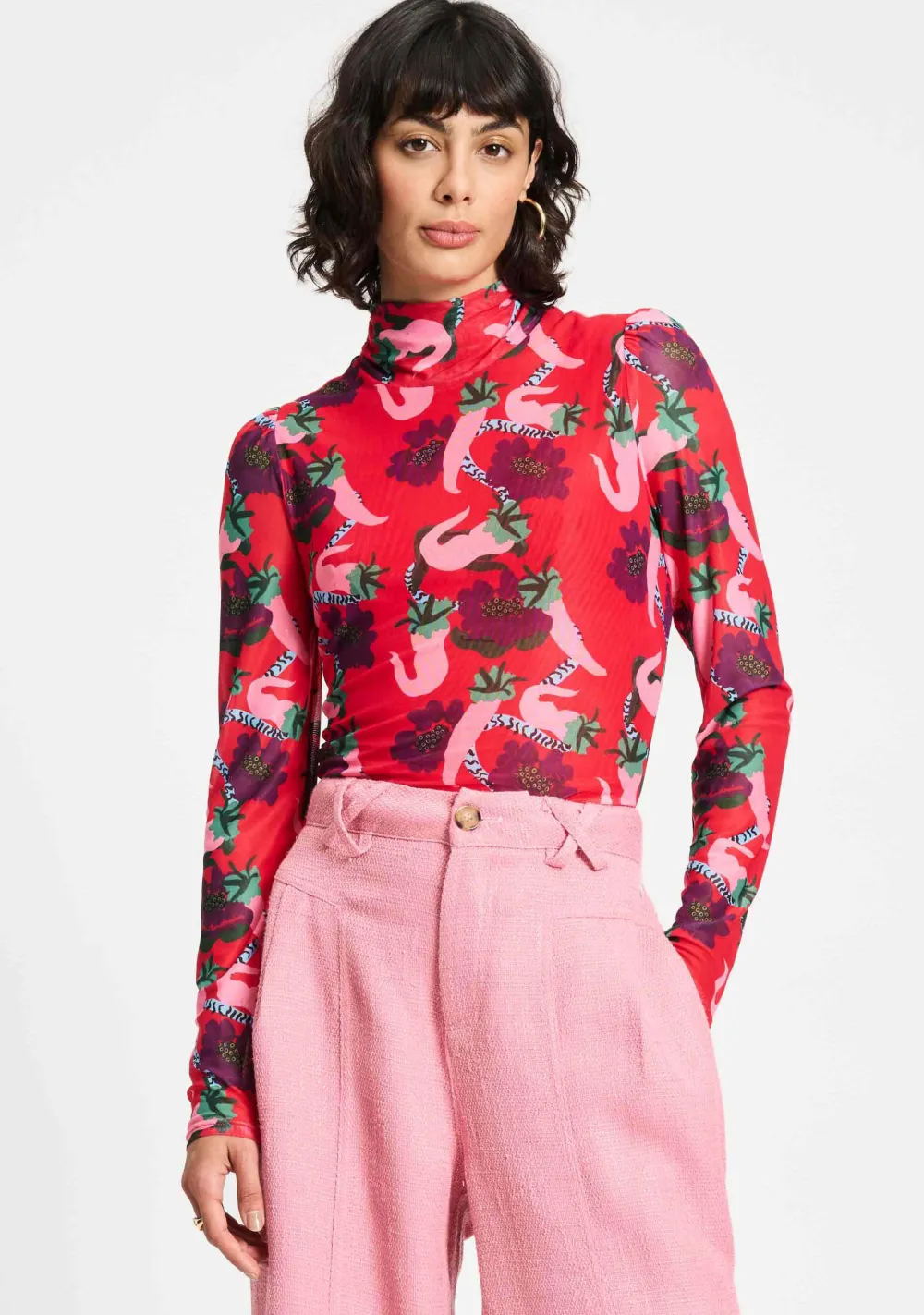 – Het model is 1.76m lang en draagt maat 36