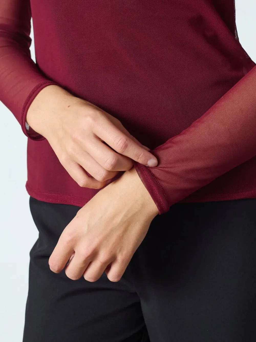 – Het model is 1.76m lang en draagt maat S