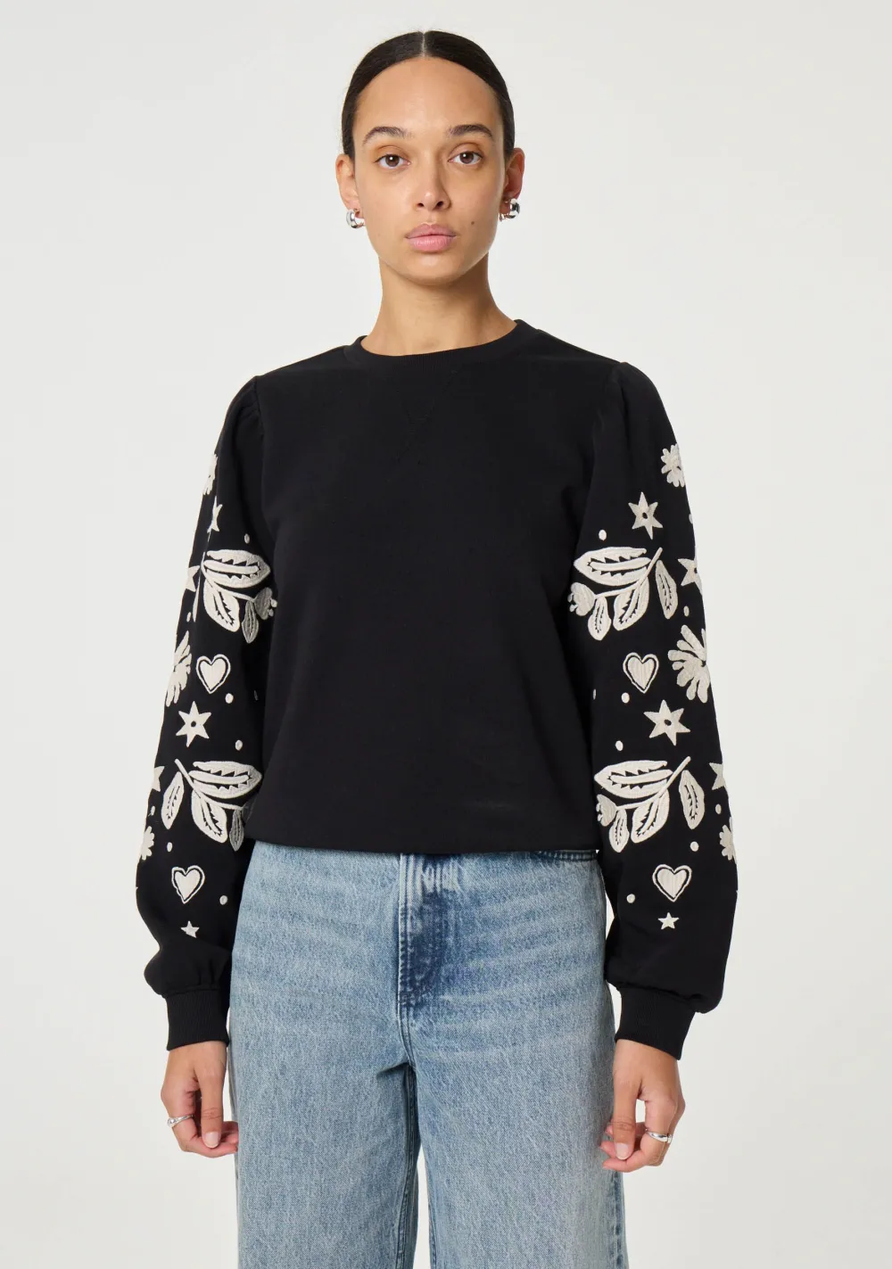 – Het model is 1.76m lang en draagt maat S
