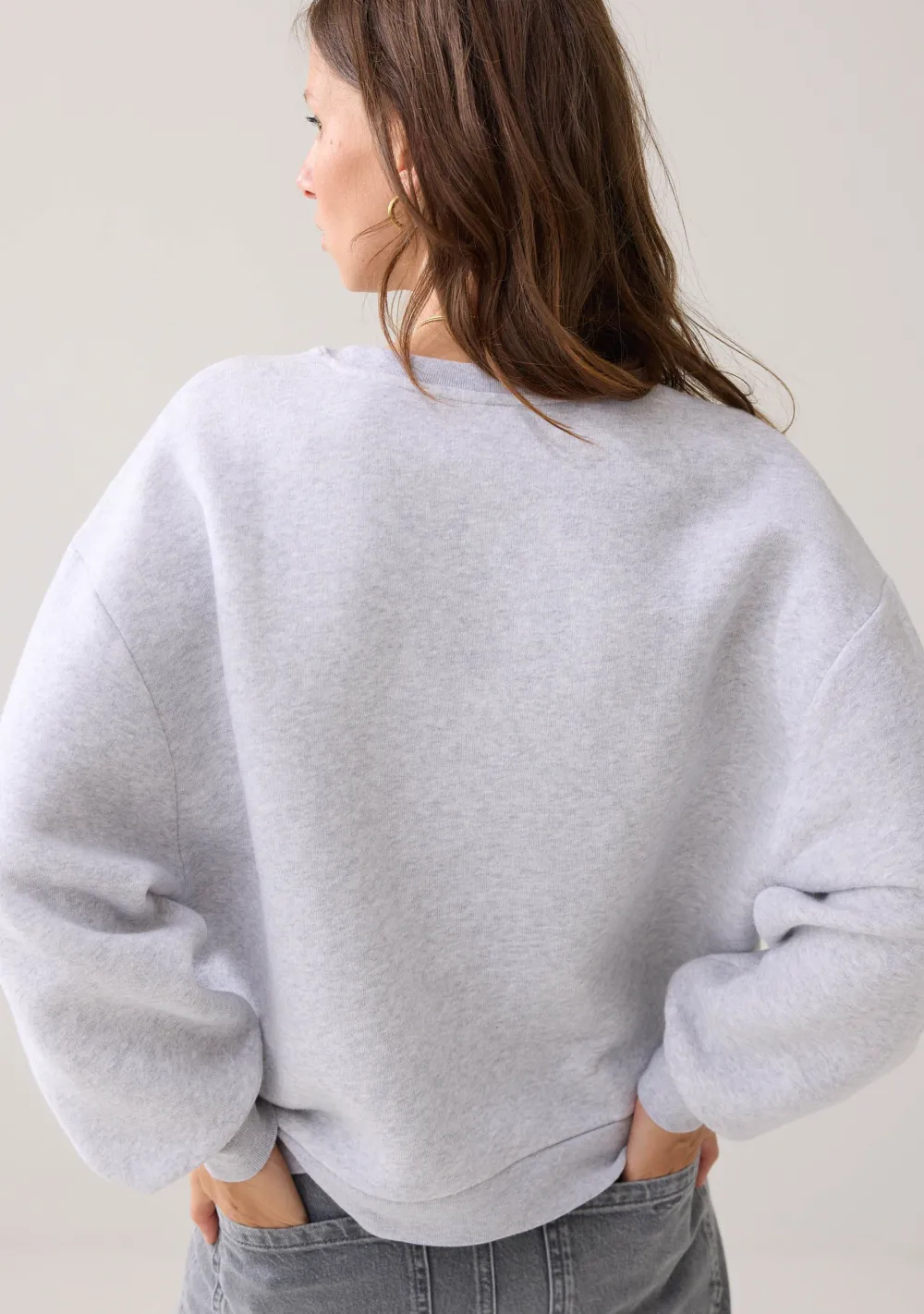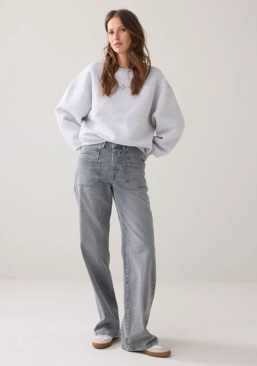 – Het model is 1.76m lang en draagt maat S