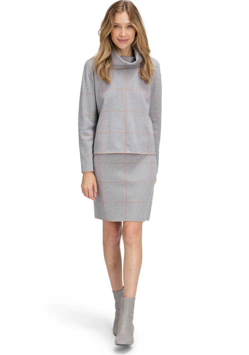 – Het model is 1.76m lang en draagt maat 38