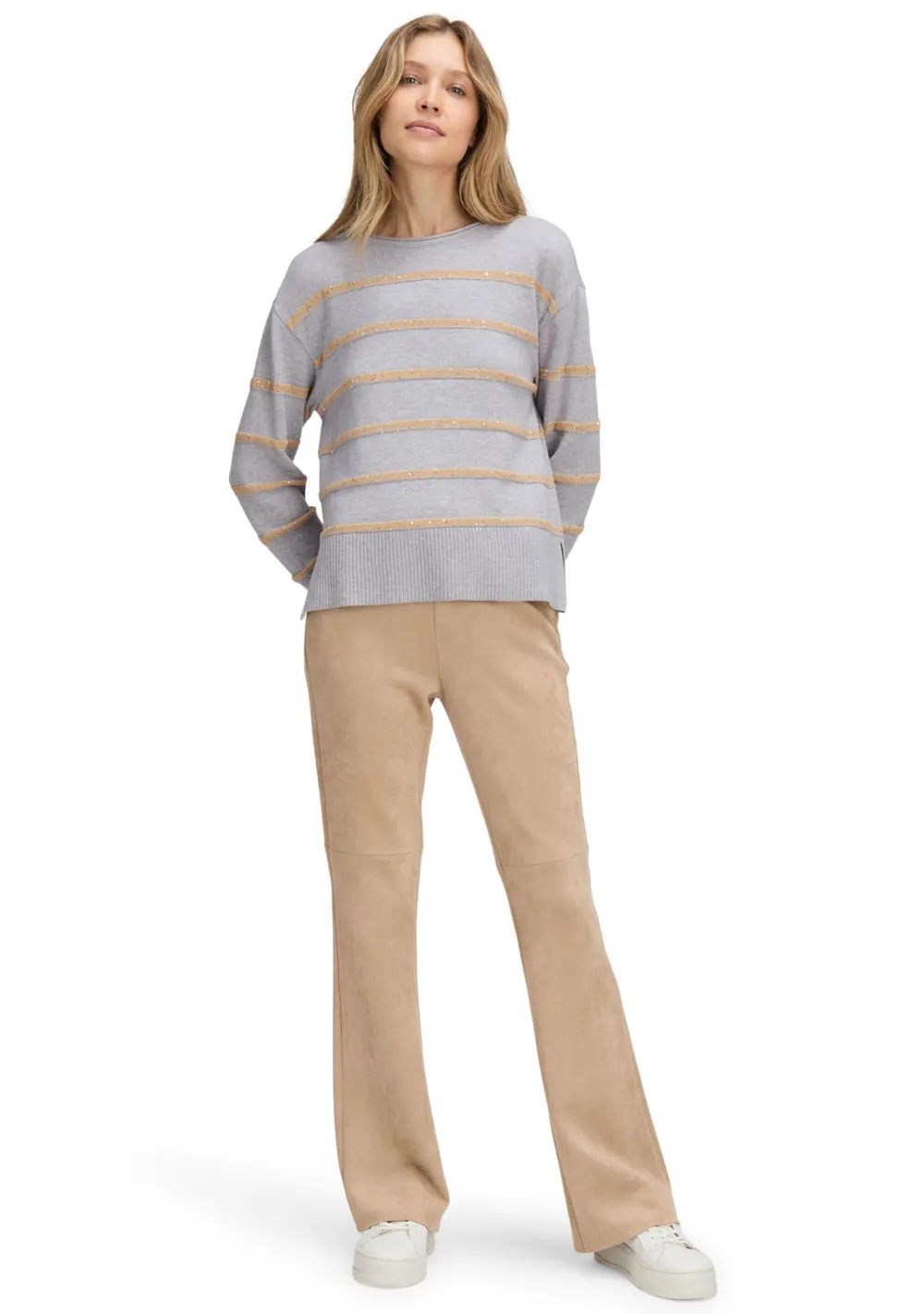 – Het model is 1.76m lang en draagt maat 38