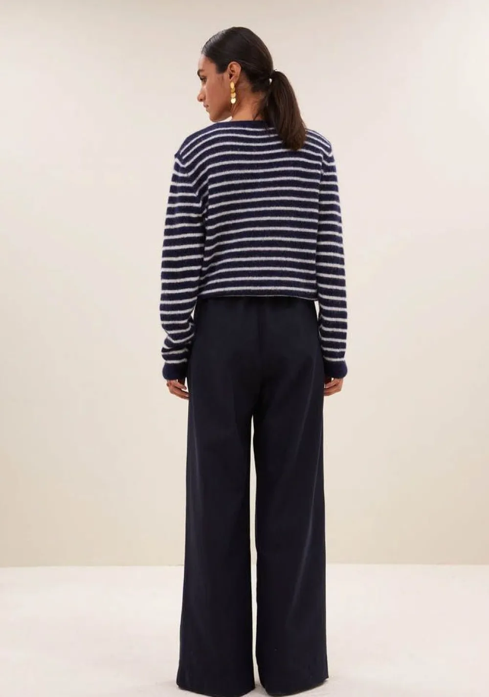 – Het model is 1.75m lang en draagt maat S