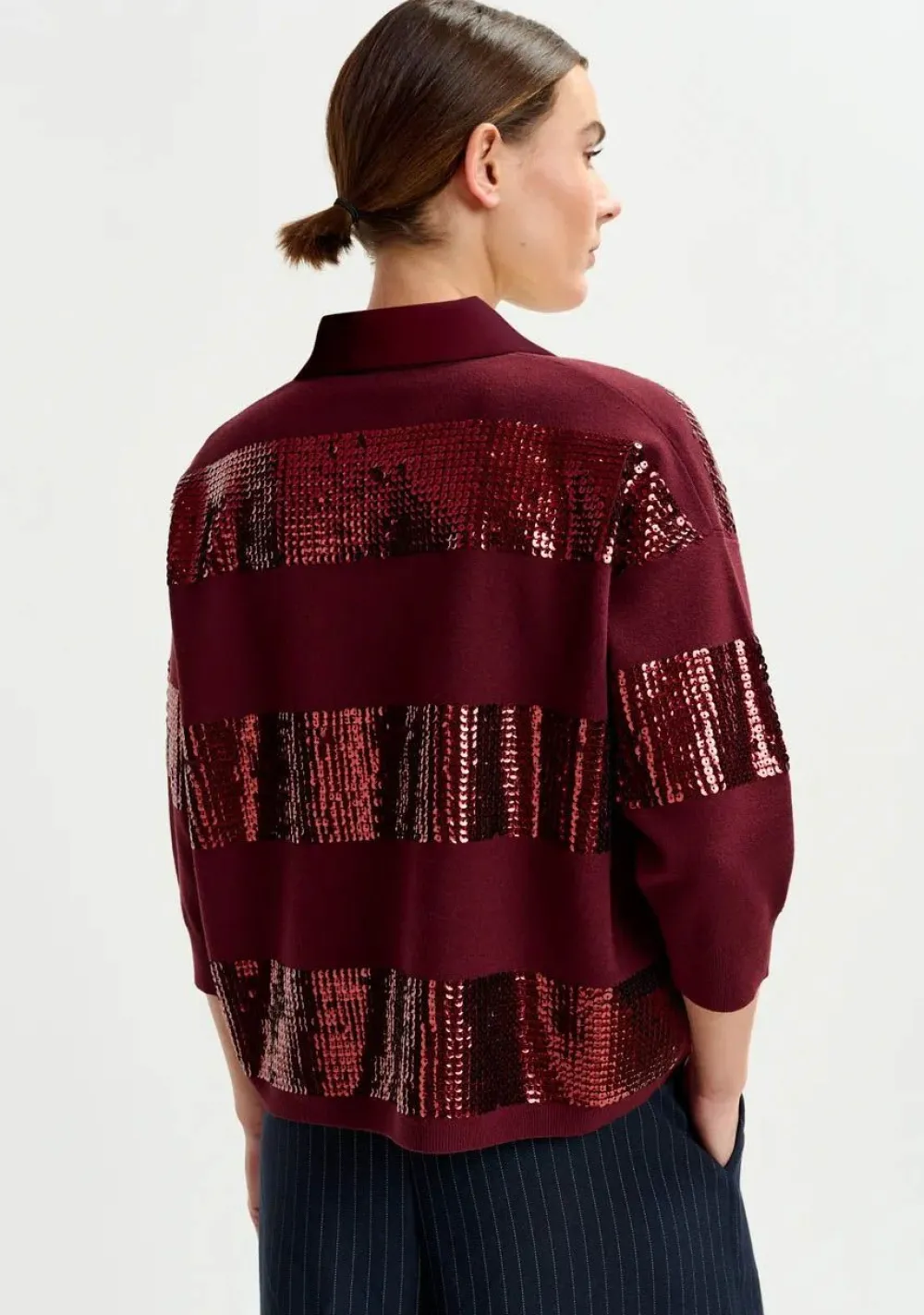 – Het model is 1.75m lang en draagt maat 36