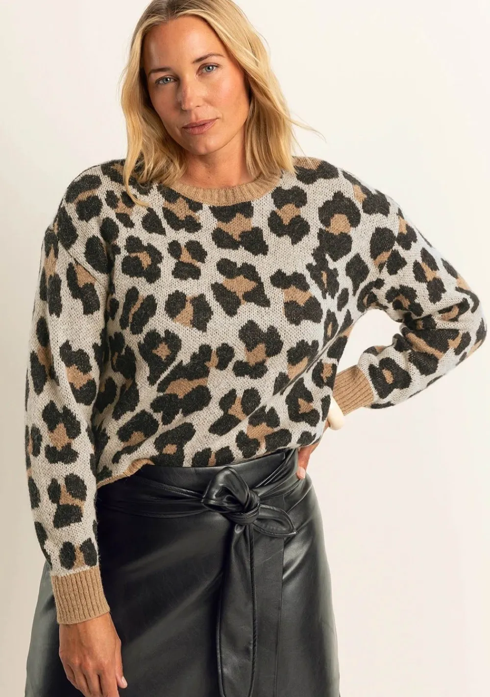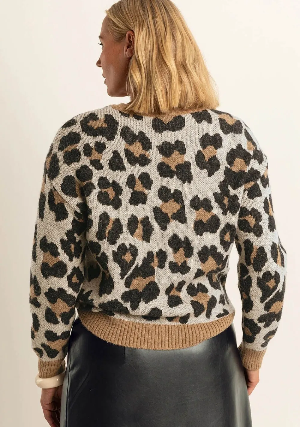 – Het model is 1.76m lang en draagt maat S