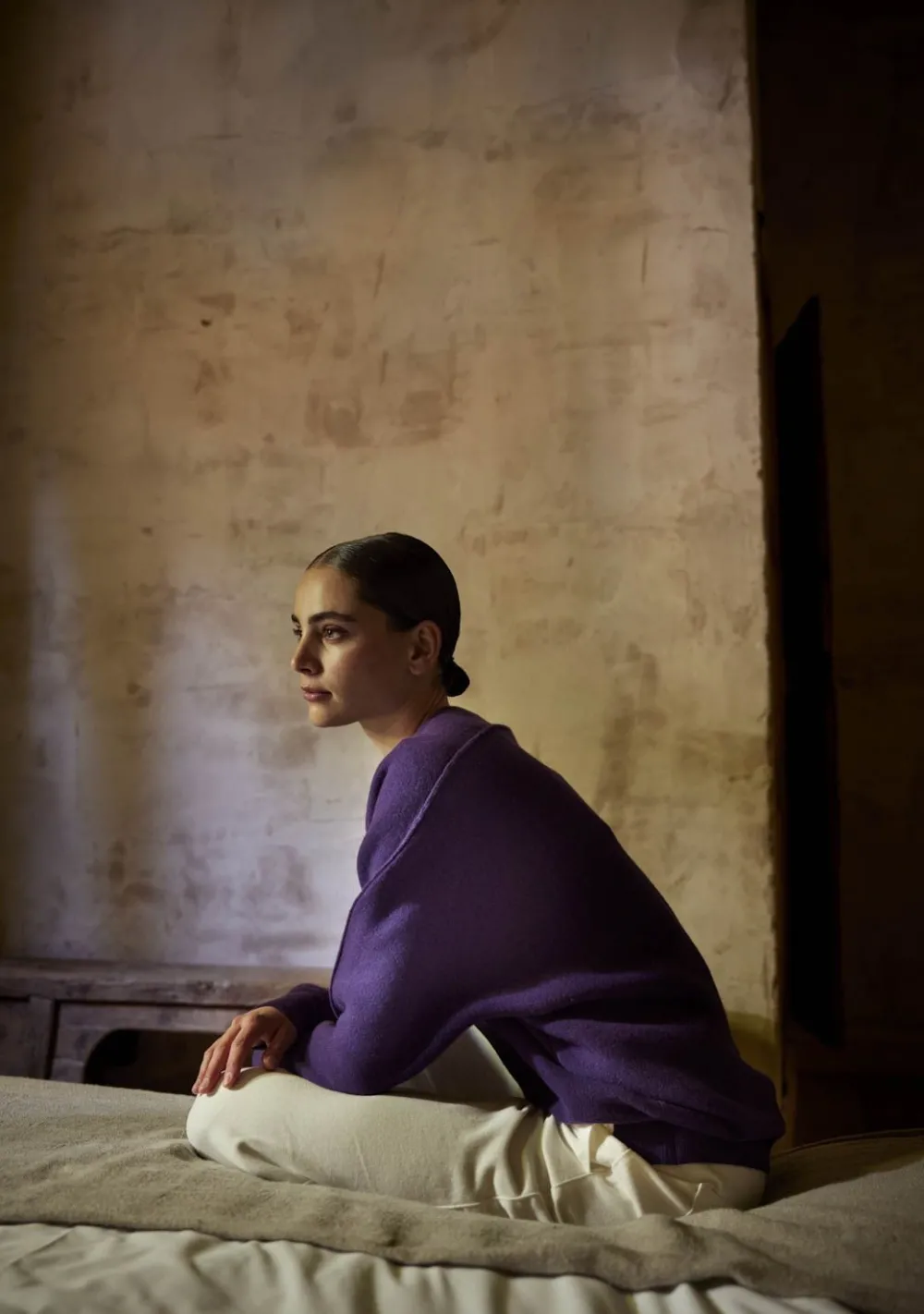 – Het model is 1.76m lang en draagt maat S