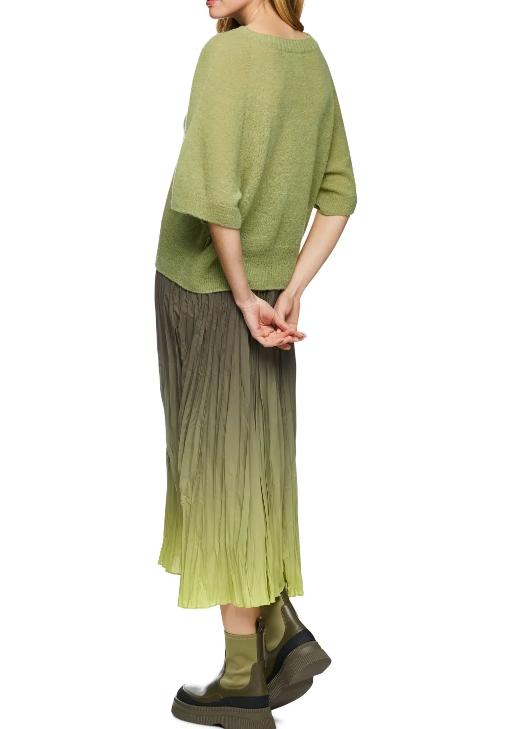 – Het model is 1.76m lang en draagt maat 36